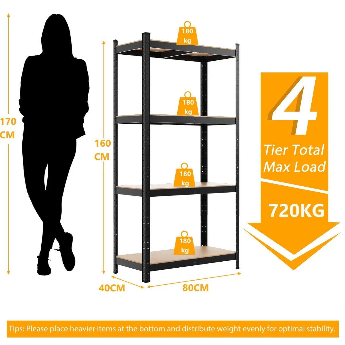 【Hoge belastbaarheid】 Ons opbergrek kan tot 180 kg per plank dragen. Zo kunnen verschillende artikelen, zoals gereedschap, tuingereedschap, boeken enz. heerlijk gemakkelijk worden opgeborgen.