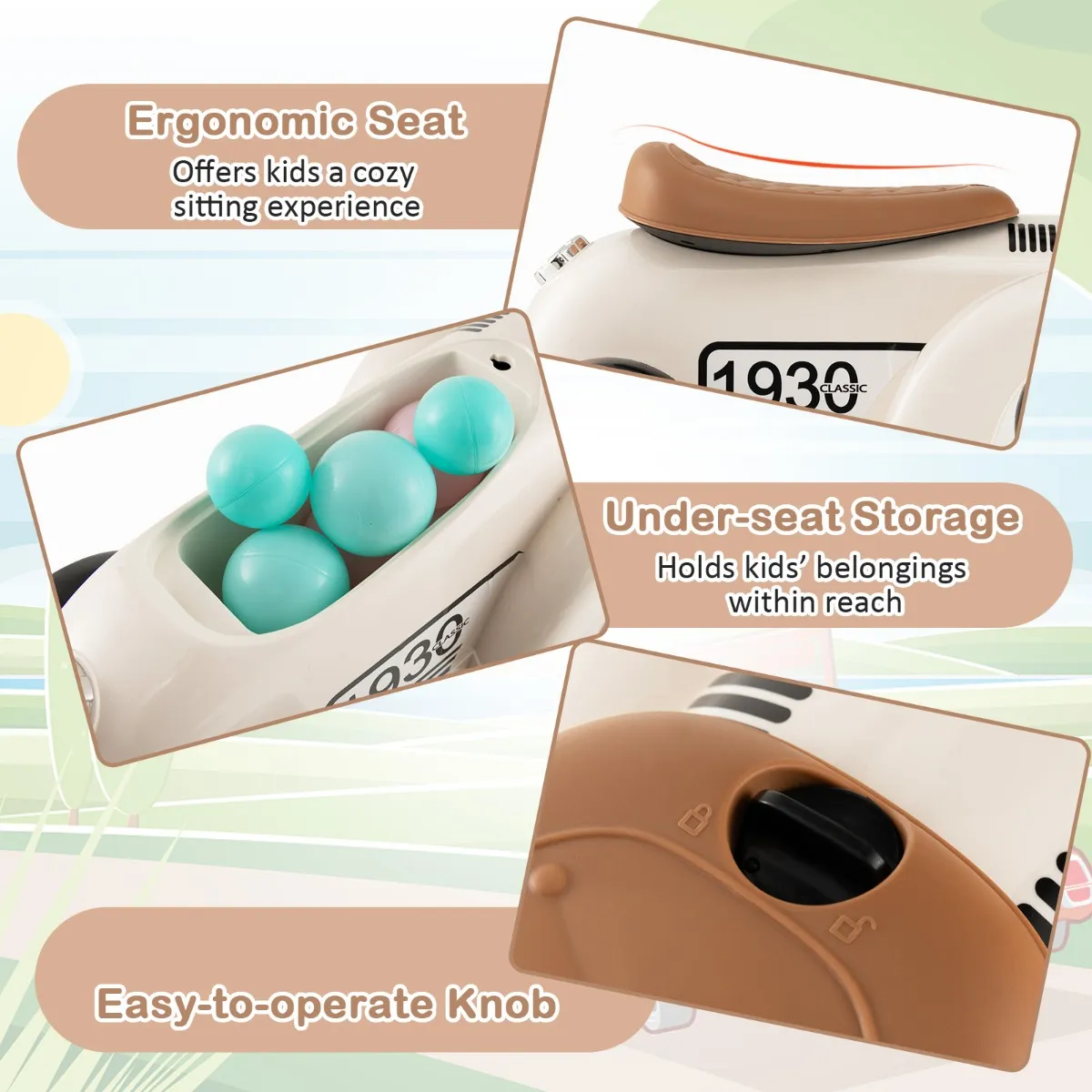 Veilig en realistisch rijden: Deze retro auto heeft een realistisch stuurwiel met geluid, waardoor kinderen gemakkelijk naar links of rechts kunnen draaien. Bovendien voorkomt de tot 40° begrensde veiligheidsstuurinrichting dat kinderen per ongeluk zijwaarts vallen.