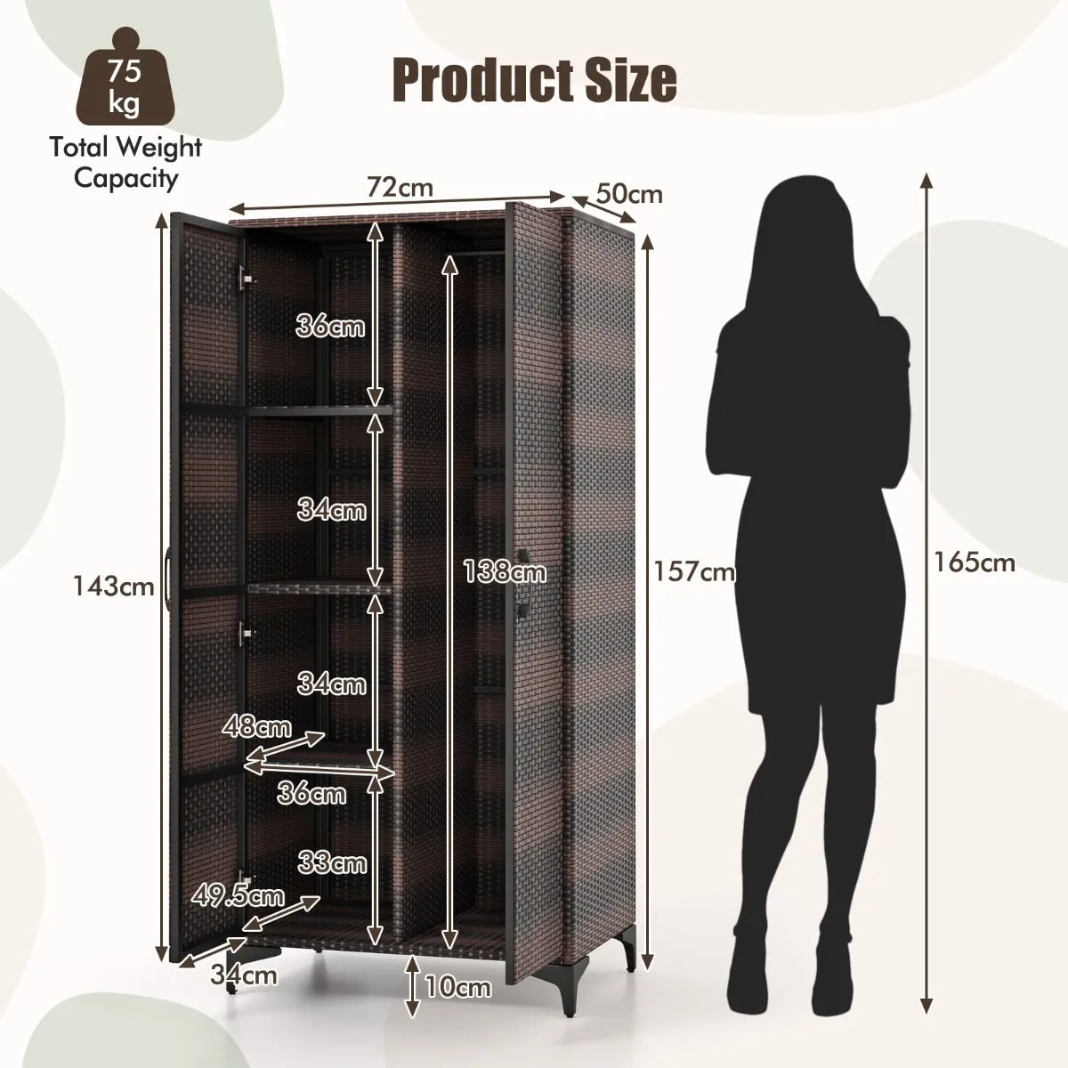 - Productafmetingen: 72 x 50 x 157 cm (L x B x H)