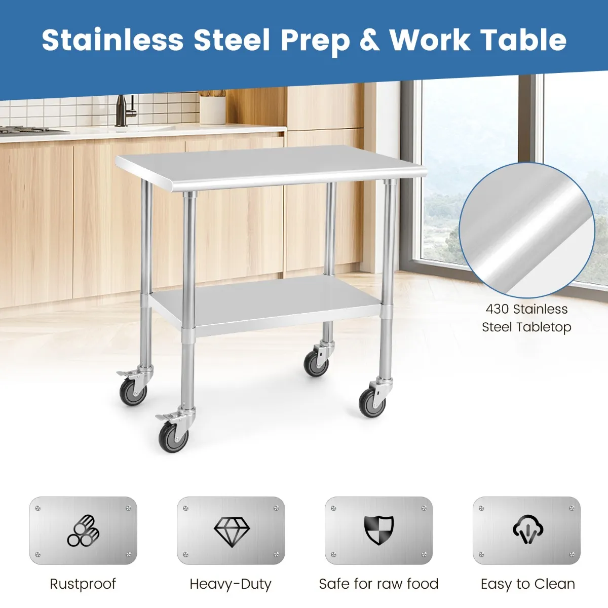 Uitgerust met 4 zwenkwielen van 360°, waarvan 2 geremd, verplaatst deze werktafel zich gemakkelijk van de ene kamer naar de andere. Bovendien kan hij automatisch worden aangepast om verschillende items op te bergen. Met een draagvermogen van 150 kg op de bovenplaat en 100 kg op de onderplaat kun je op deze tafel een groot aantal items opbergen. En dan hebben we het nog niet eens over het feit dat de tafel gebruikt kan worden als tafel om voedsel op te bereiden in een restaurant of als opbergrek in een werkplaats. Tot slot zijn de installatiestappen heel eenvoudig en kan je de tafel snel in elkaar zetten door de instructies te volgen. Je zult er geen spijt van krijgen dat je voor onze stevige werktafel hebt gekozen.