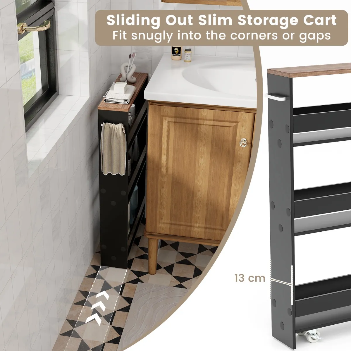 Uittrekbare, slanke opbergtrolley: Op zoek naar een ruimtebespaarder? Met afmetingen van 47,5 x 13 x 80,5 cm (L x B x H) past deze slanke keukenwagen moeiteloos in smalle ruimtes en optimaliseert zo de opbergmogelijkheden in compacte gebieden.