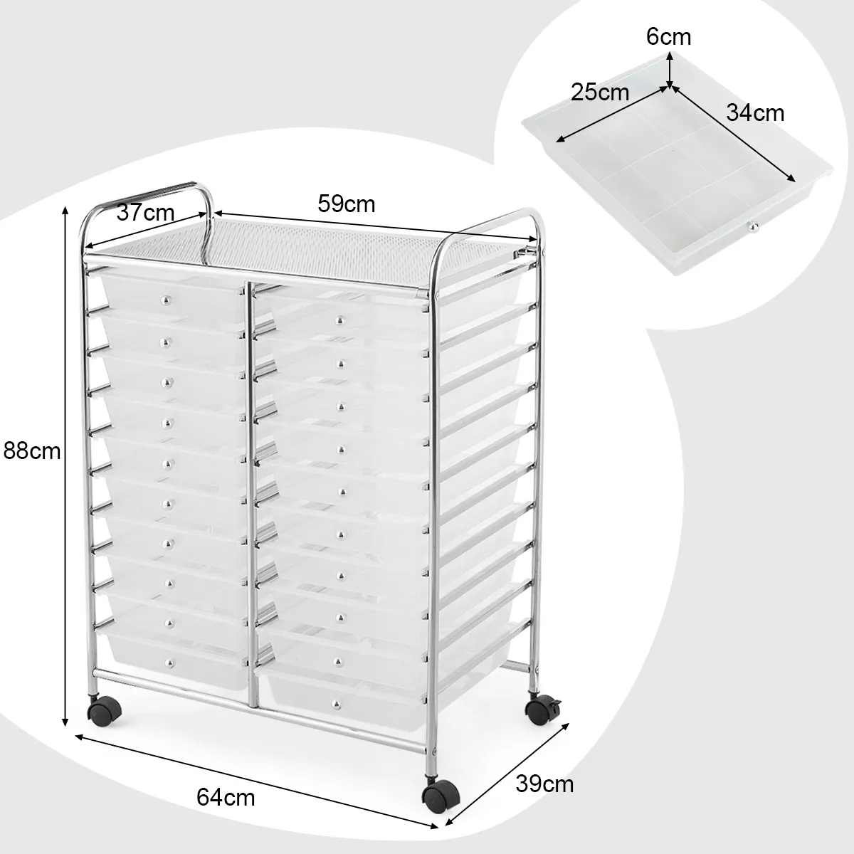 - Inbegrepen in de verpakking: 1 x Rollende opbergtrolley met 20 lades1 x Instructie