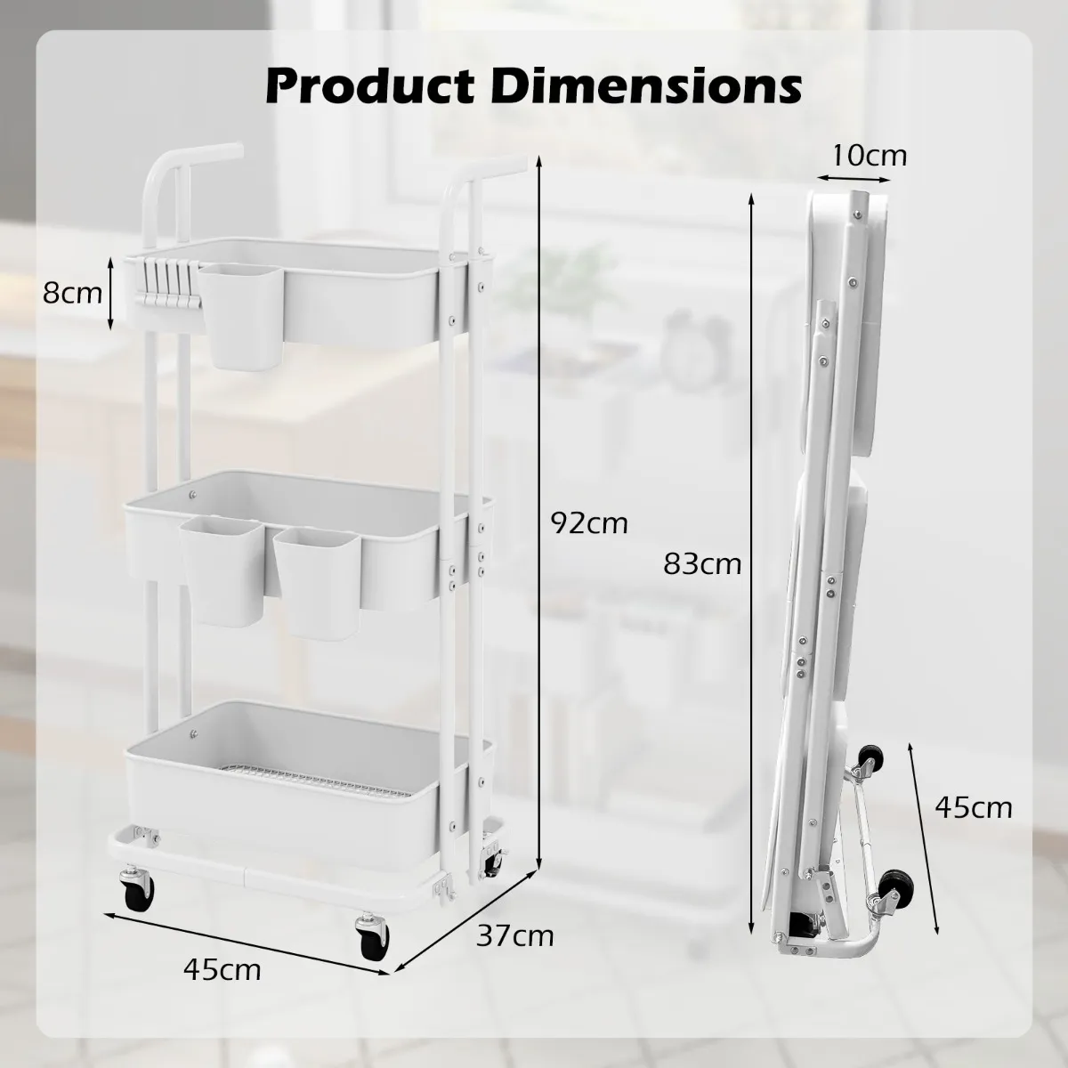 - Totale afmetingen: 45 x 37 x 92 cm (L x B x H)