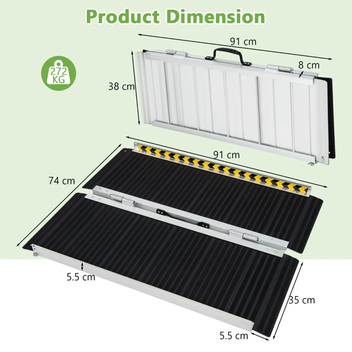 Opvouwbaar en draagbaar ontwerp: Dankzij de easy-fold functie kan de oprijplaat worden opgevouwen tot een compact formaat voor ruimtebesparing en eenvoudig transport. Neem hem overal mee naartoe en zorg voor toegankelijkheid waar je hem nodig hebt.