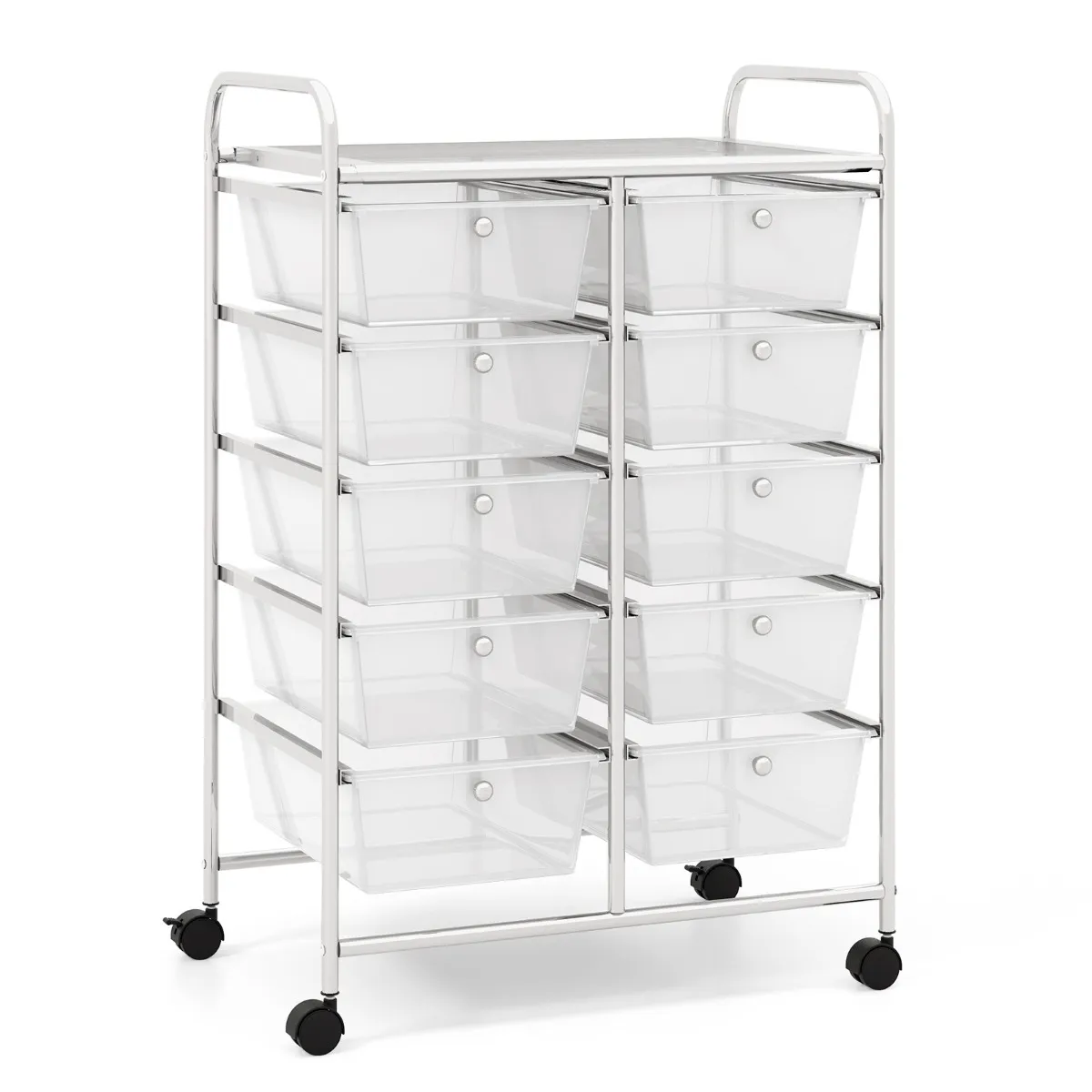 Deze multifunctionele wagen beschikt over een roosterplatform en 10 ruime laden, zodat je een groot aantal voorwerpen zoals gereedschap, papier, kantoormateriaal of knutselmaterialen kunt opbergen en organiseren. En de laden zijn ook uitneembaar, zodat je je voorraad gemakkelijk kunt bereiken en nog efficiënter kunt organiseren. Als je de wagen wilt verplaatsen, grijp je gewoon de metalen handgrepen en schuif je hem met behulp van de 4 universele wielen op de gewenste plaats.