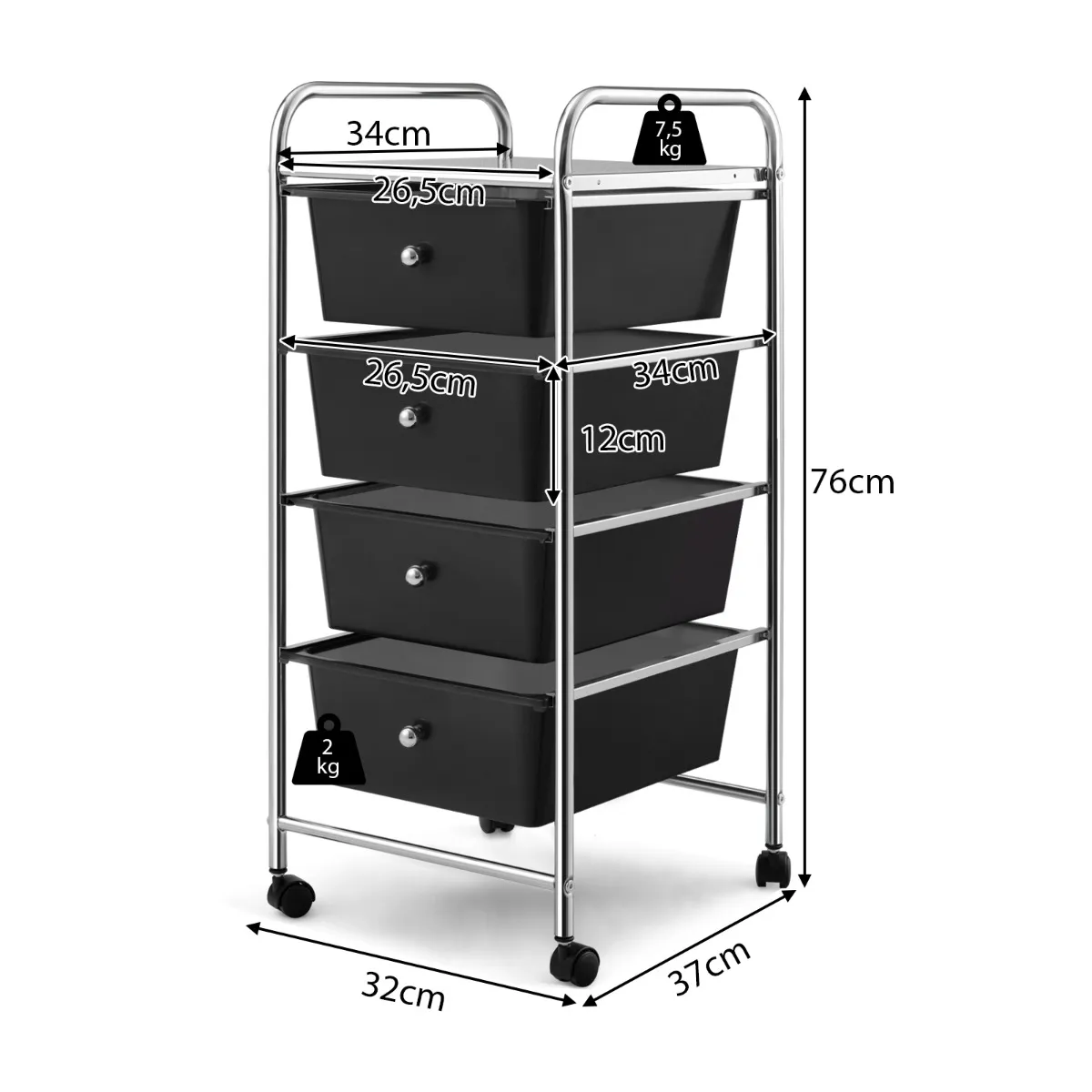 - Afmetingen: 37 cm x 32 cm x 76 cm (L x B x H)