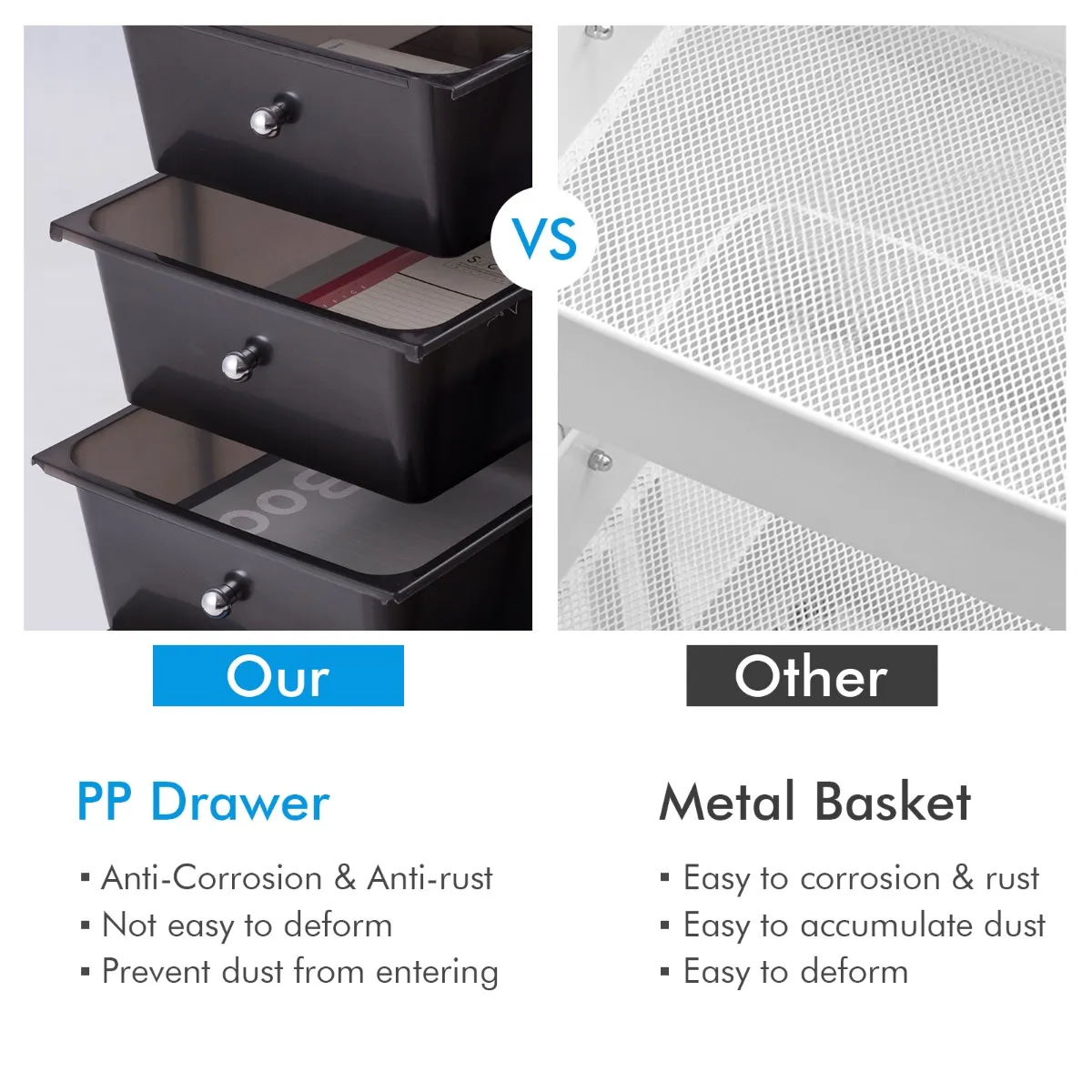 Duurzame PP lades en roestbestendig frame zijn gemakkelijk schoon te maken