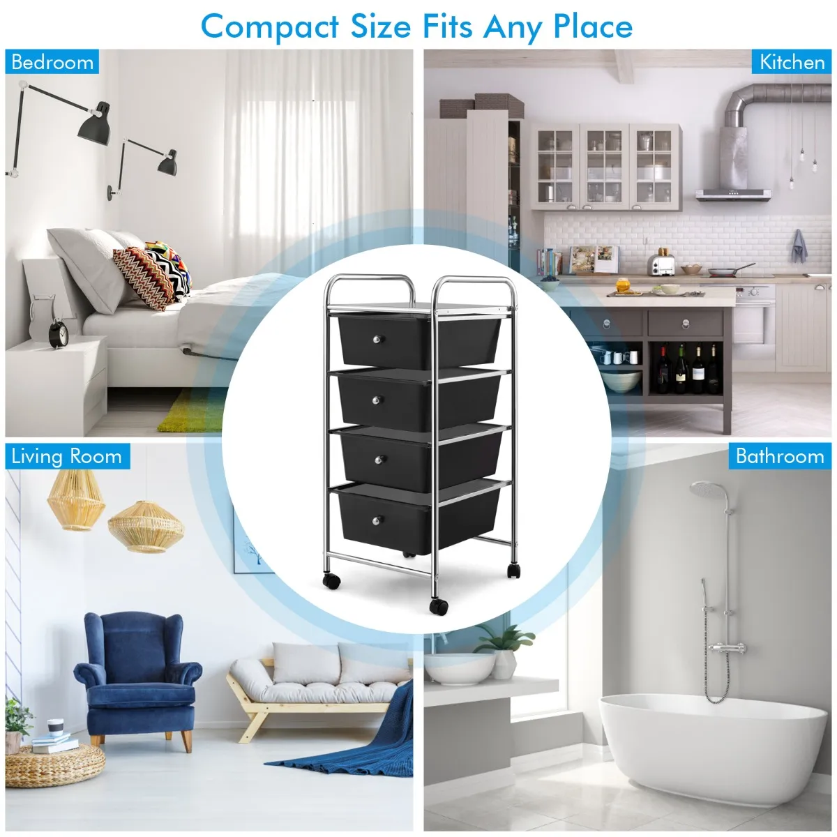 【4 laden met voldoende ruimte】Met zijn 4 grote laden biedt deze trolley voldoende ruimte voor het opbergen van voorwerpen van verschillende categorieën. Zo vind je gemakkelijk wat je nodig hebt en kun je eenvoudig orde houden.