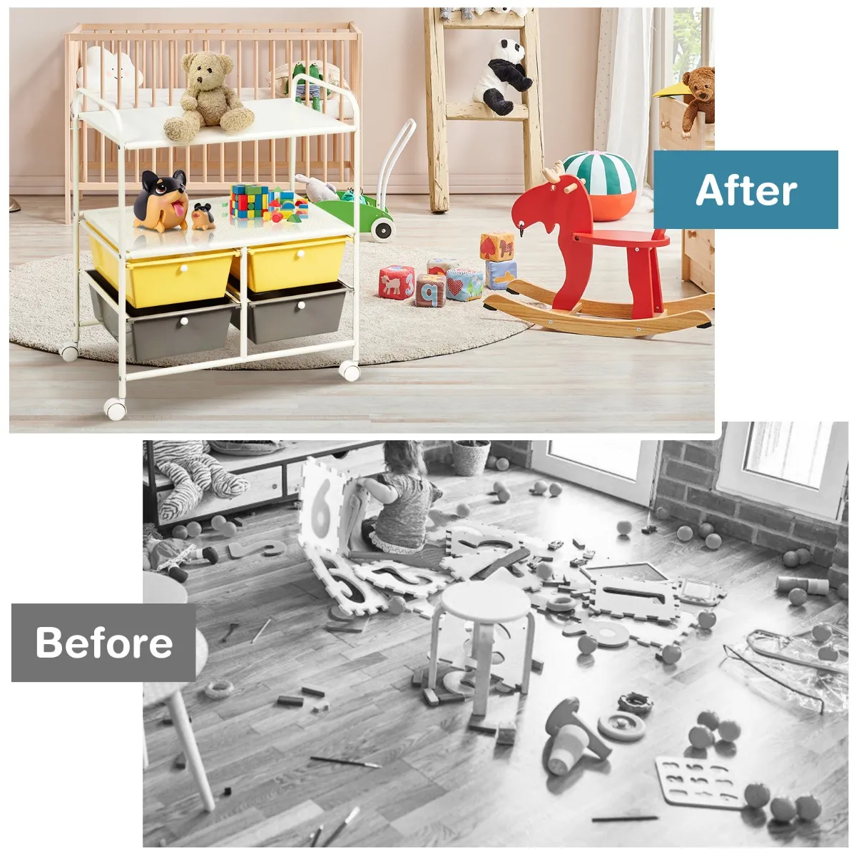 【Uitneembare lades】 De mobiele trolley beschikt over 4 aparte laden, die elk kunnen worden verwijderd. Eenvoudig te bedienen. Bovendien vergemakkelijkt hij ook de classificatie van de artikelen.