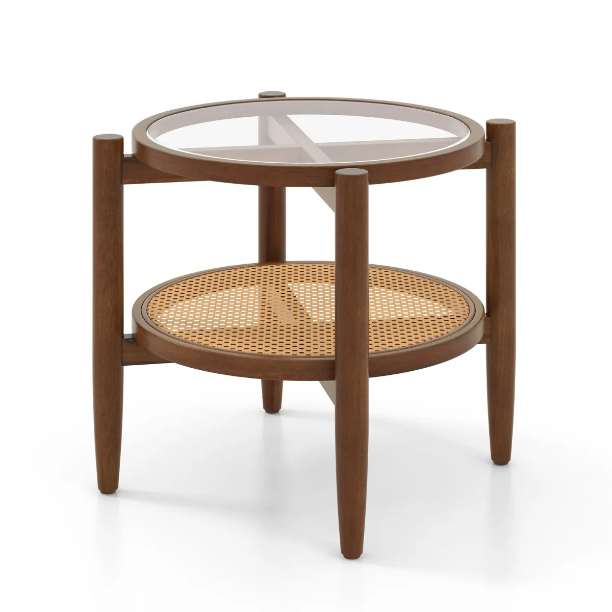 Dit veelzijdige stuk biedt niet alleen een grote tafel en extra plank voor al je benodigdheden en snacks, maar het compacte ontwerp bespaart kostbare woonruimte. Deze praktische en stijlvolle aanwinst is ontworpen met stevige acaciahouten poten en is voorzien van antislip glijders, terwijl hij verstevigd is met X-vormige dwarsbalken. Hierdoor biedt deze bijzettafel betrouwbare ondersteuning en een maximale totale belastbaarheid van 55 kg. Het gladde blad van gehard glas zorgt voor duurzaamheid en eenvoudig onderhoud, terwijl de verrassende toevoeging van PE rotan een vleugje natuurlijke schoonheid toevoegt zonder te verbleken of te scheuren. Deze salontafel is geurloos en veilig voor kinderen en huisdieren, en verbetert gemakkelijk de sfeer in elke kamer. Het in elkaar zetten van dit nachtkastje is een fluitje van een cent in slechts 6 eenvoudige stappen en er is geen extra gereedschap nodig. Of het nu gebruikt wordt als nachtkastje, bijzettafel voor de bank of bijzettafel, dit multifunctionele stuk past perfect in elke ruimte.
