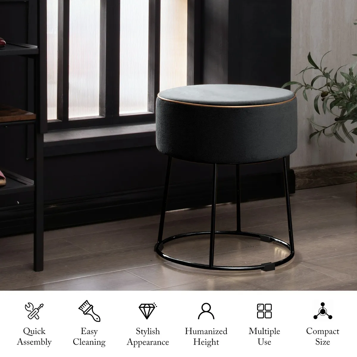 【Moderne stijl voor een aantrekkelijke inrichting】: Deze ronde fluwelen poef met metalen buisvoet geeft elke kamer een moderne uitstraling. De strakke lijnen maken van deze praktische ronde poef een decoratieve toevoeging. En zijn eenvoudige, elegante look past bij verschillende inrichtingsstijlen.