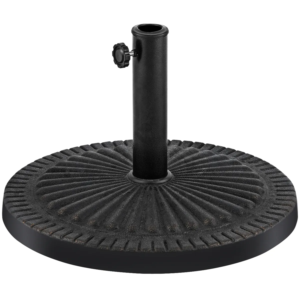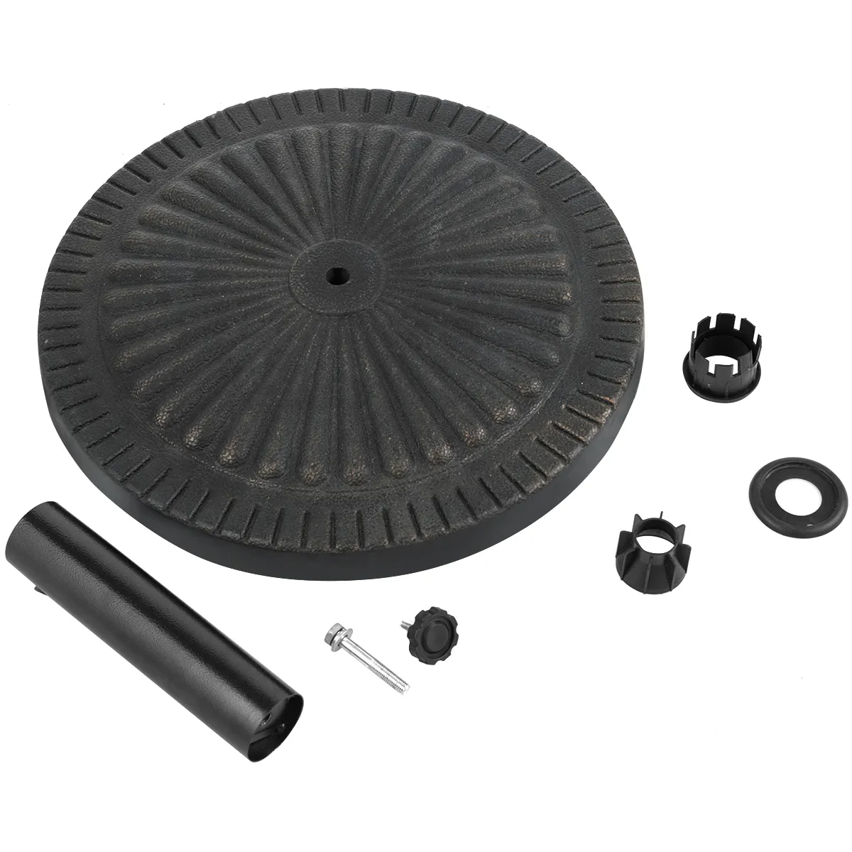 De vrijstaande basis wordt meestal gebruikt om uw parasols te ondersteunen en voor een goede balans tijdens gebruik te zorgen. Onze paraplustokhouder is gemaakt van hoogwaardige harsbasis en ijzeren staaf, duurzaam en stabiel voor langdurig gebruik. De hars is roest- en slijtvast, waardoor je hem met minimale slijtage buiten kunt laten staan. De paraplubak heeft een handknop waarmee u een paraplu aan de voet kunt bevestigen. Deze paraplustokhouder bevat een koppeling waarmee zowel paraplustokken met een diameter van 38 mm als 48 mm kunnen worden gemonteerd (niet inbegrepen). Met een antiek ontwerp en bronzen afwerking voegt dit stuk charme en elegantie toe aan elk terras. Of het nu voor thuis of commercieel gebruik is, van de achtertuin tot het balkon, van het zwembad tot het terras, onze parasolvoet is de perfecte keuze. De levering bevat de benodigde accessoires. Met de instructies kunt u de paraplubak eenvoudig zelf installeren.