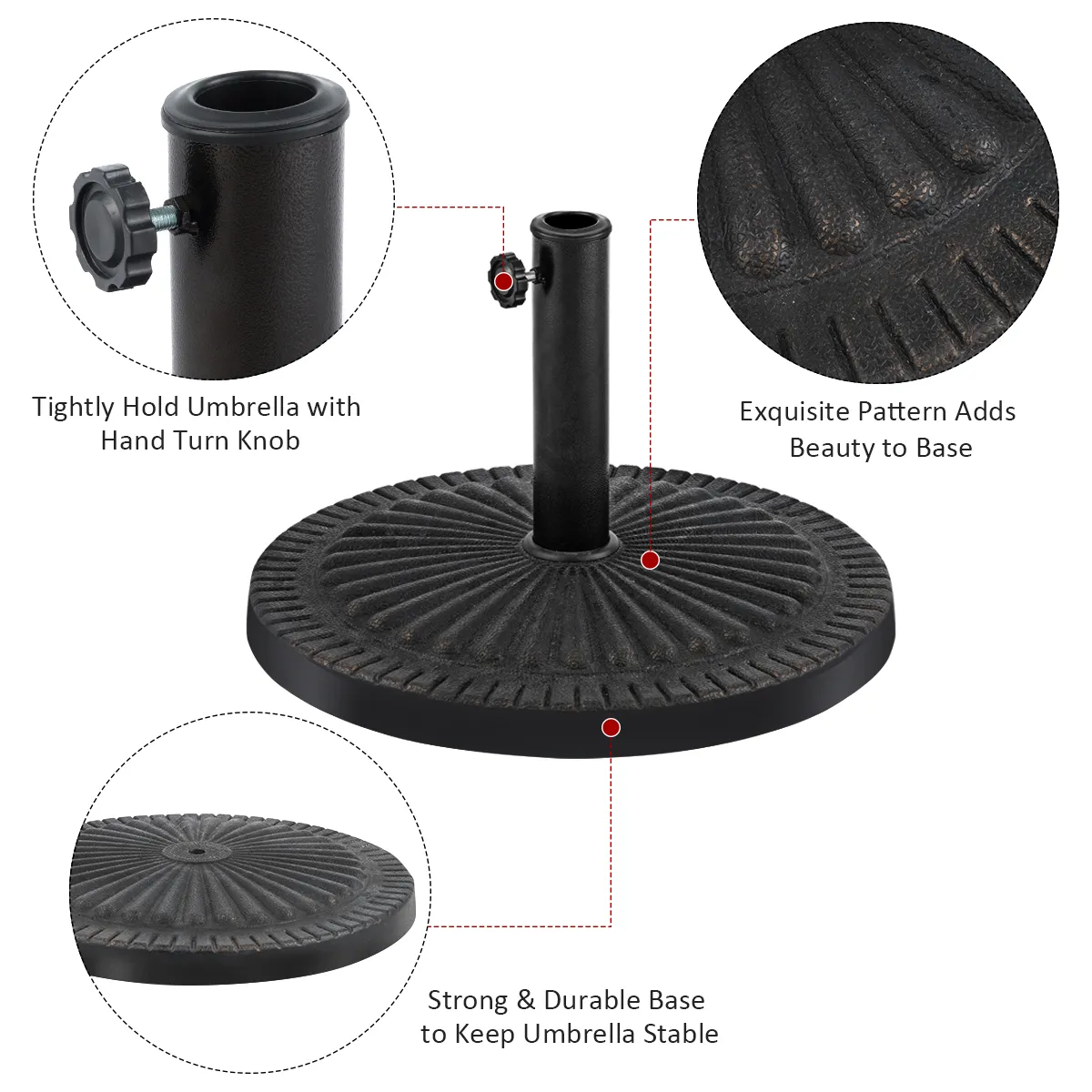 【Alle weerbestendig materiaal】De basis van deze stevige paraplubak is gemaakt van hoogwaardig harsmateriaal, dat waterdicht, verouderingsbestendig en slijtvast is en niet gemakkelijk te corroderen. Het gecoate oppervlak van deze terrasstandaard roest niet gemakkelijk en is perfect voor gebruik buitenshuis. Het is gebouwd om zijn uiterlijk jarenlang te behouden.