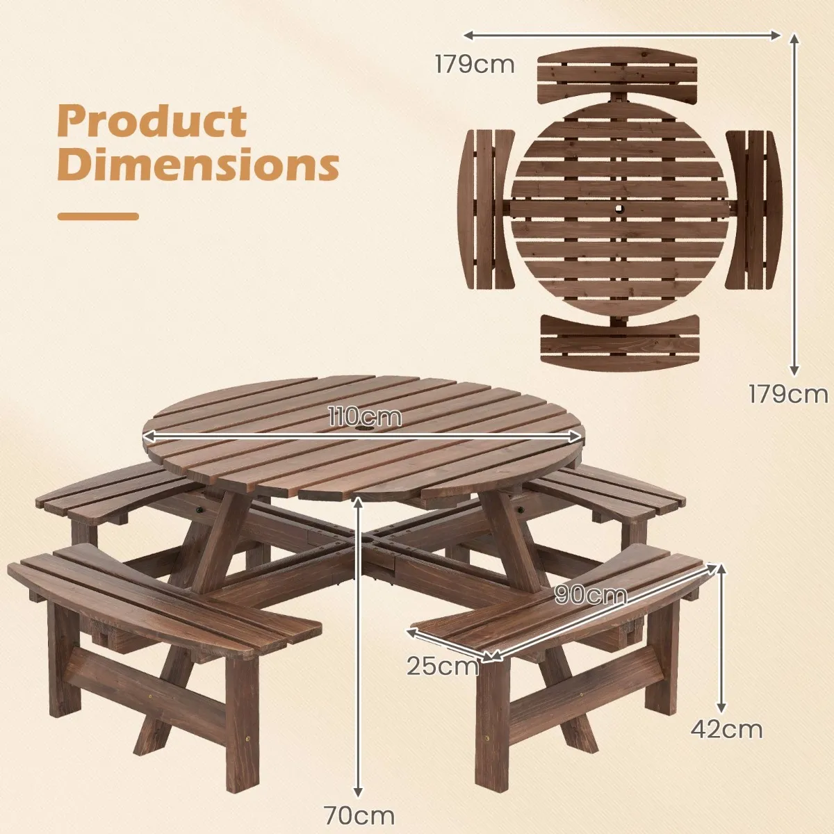 Ronde picknicktafel en 4 geïntegreerde banken, ideaal voor 2 tot 8 personen