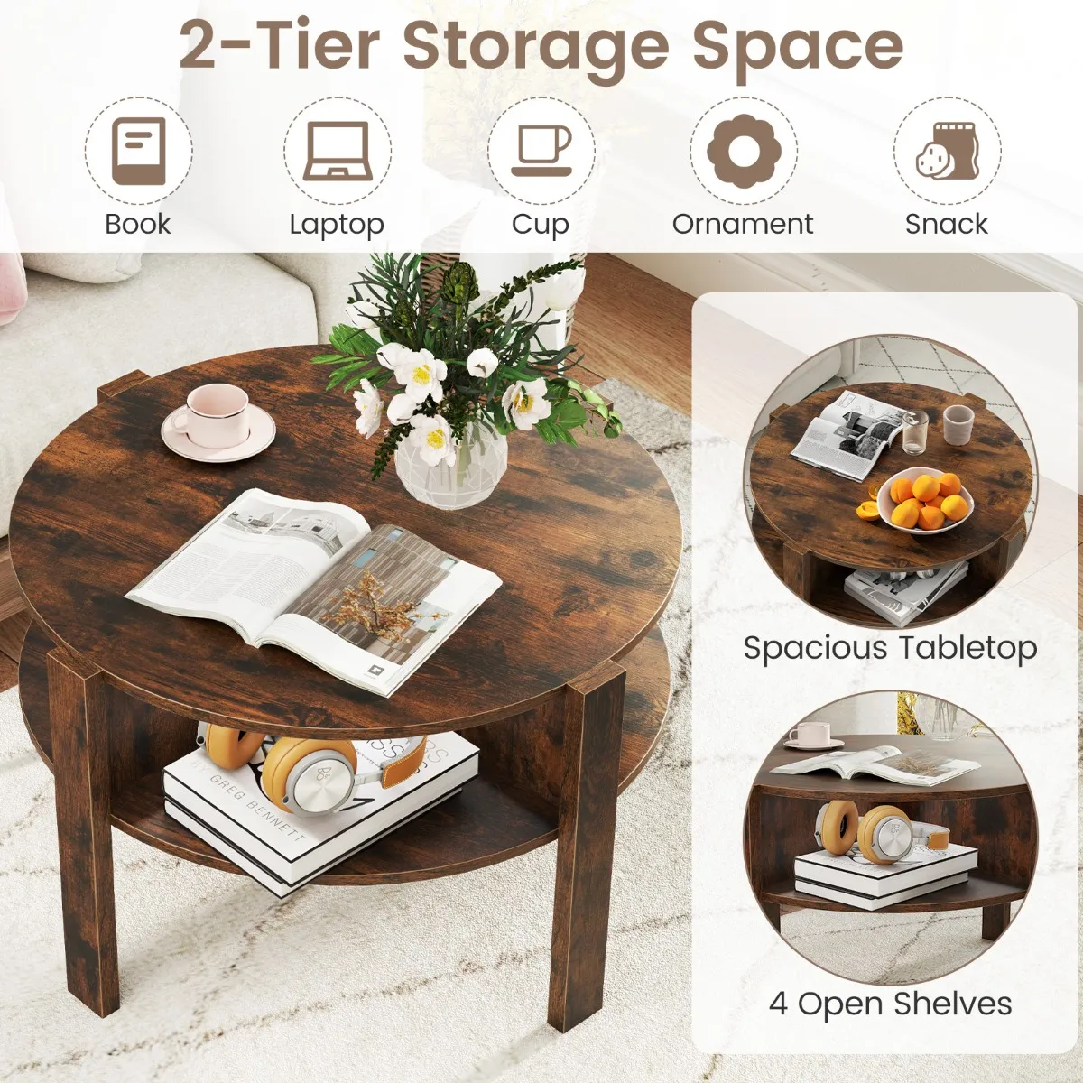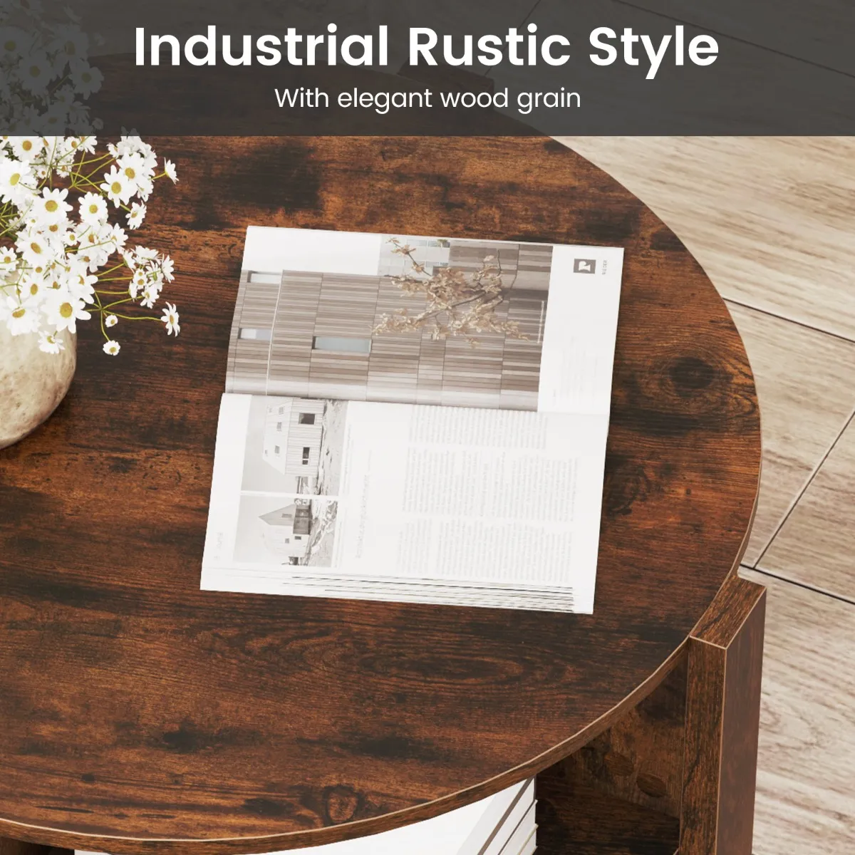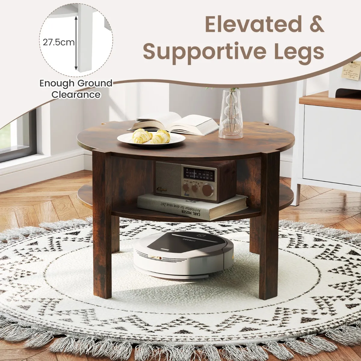 Geef je woonruimte een esthetisch tintje met deze tijdloze ronde salontafel met een klassieke houtnerfafwerking die moeiteloos bij elke interieurstijl past. De elegante afwerking met imitatiehout zorgt voor verfijning en verhoogt meteen de esthetiek van je ruimte. Blijf georganiseerd met het innovatieve opbergontwerp met 2 niveaus dat voldoende ruimte biedt voor boeken, drankjes en decoratieve items binnen handbereik. Deze veelzijdige tafel dient als stijlvol middelpunt in elke kamer.