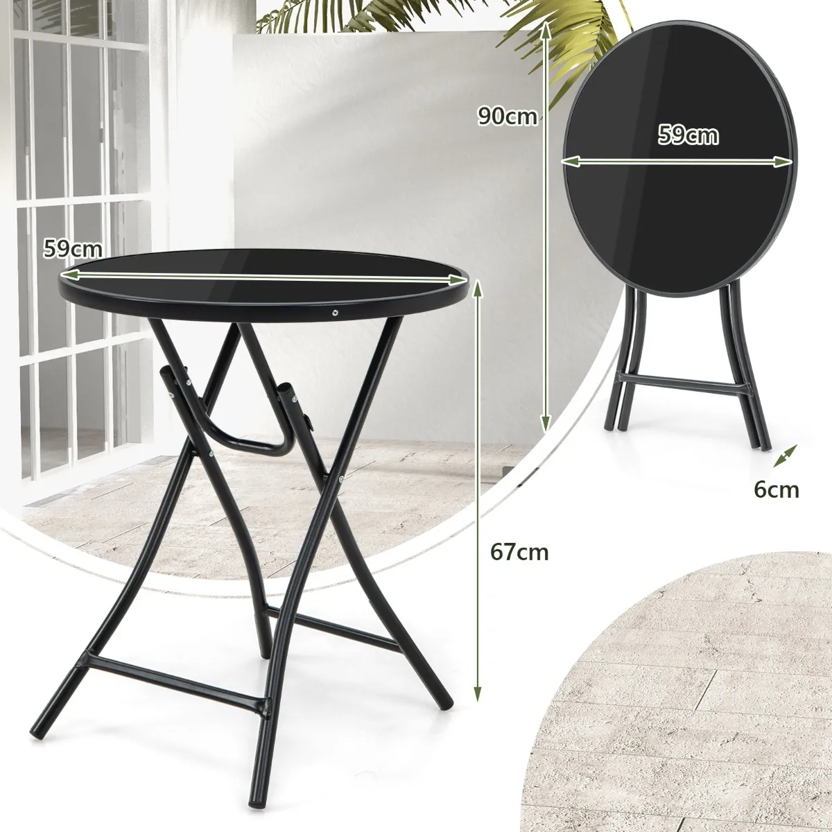 De opvouwbare bistrotafel is een veelzijdige en praktische toevoeging aan elke ruimte, zowel binnen als buiten. Het stevige, roestbestendige metalen frame zorgt voor duurzaamheid, terwijl de ‘X’-vormige metalen structuur en versterkte dwarsbalken voor stabiliteit zorgen. Het hoogwaardige blad van gehard glas zorgt voor een perfect oppervlak en een elegante toets aan uw exterieur. Met zijn compacte opvouwbare formaat biedt hij eenvoudige opslag en transport, breed geschikt van achtertuin tot woonkamer.
