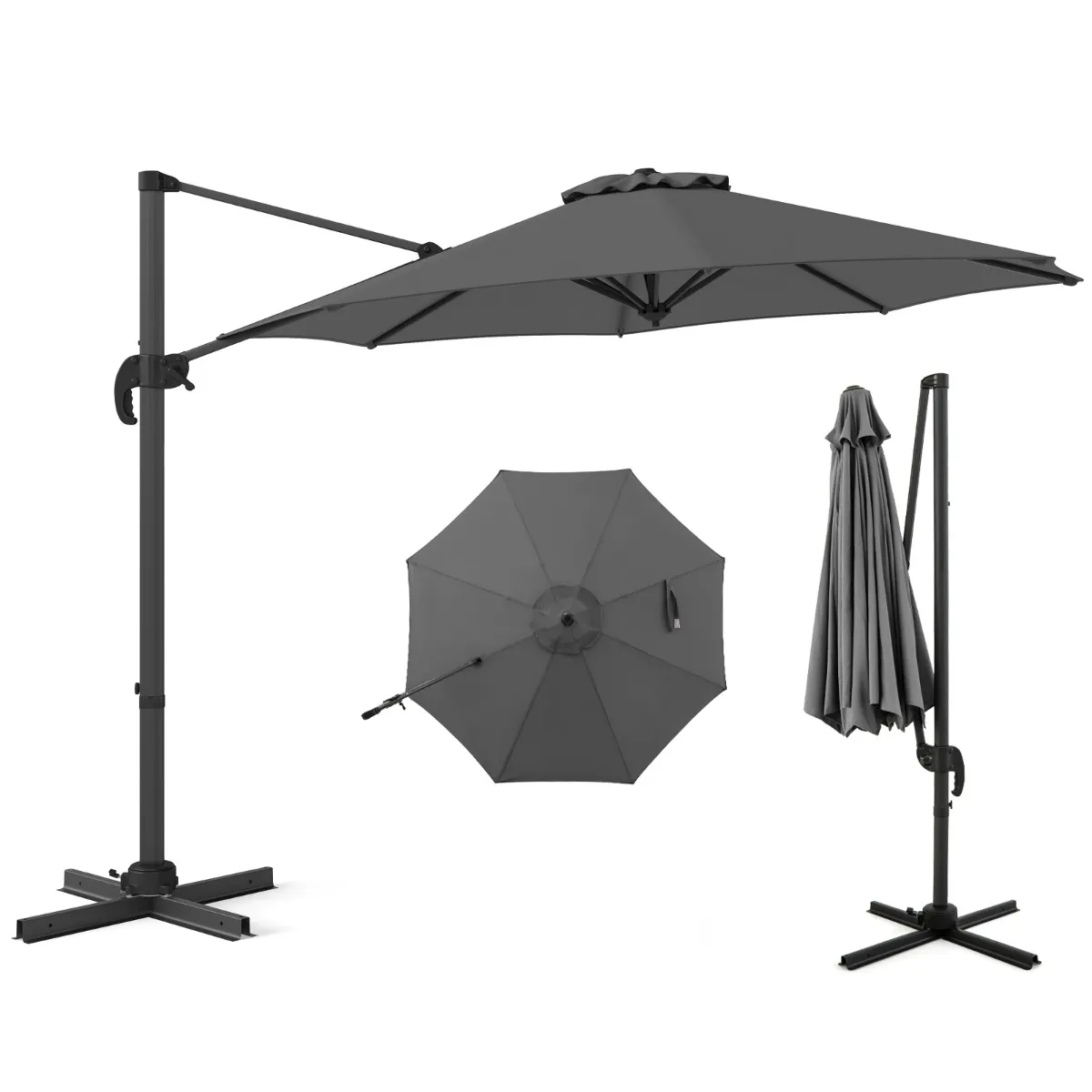 【Verstelbare kanteling en 360° rotatie】: Deze zweefparasol heeft 5 instelbare kantelhoeken, eenvoudig te verstellen door de slinger omhoog en omlaag te bewegen. Hij is ook voorzien van een handig voetpedaal voor moeiteloze 360° rotatie.