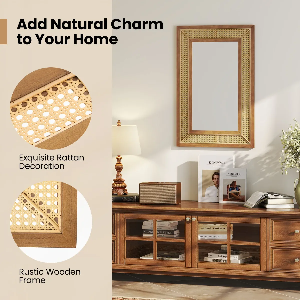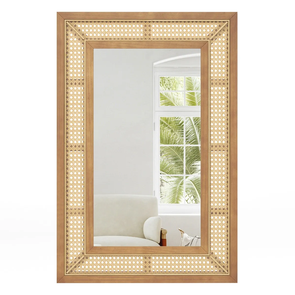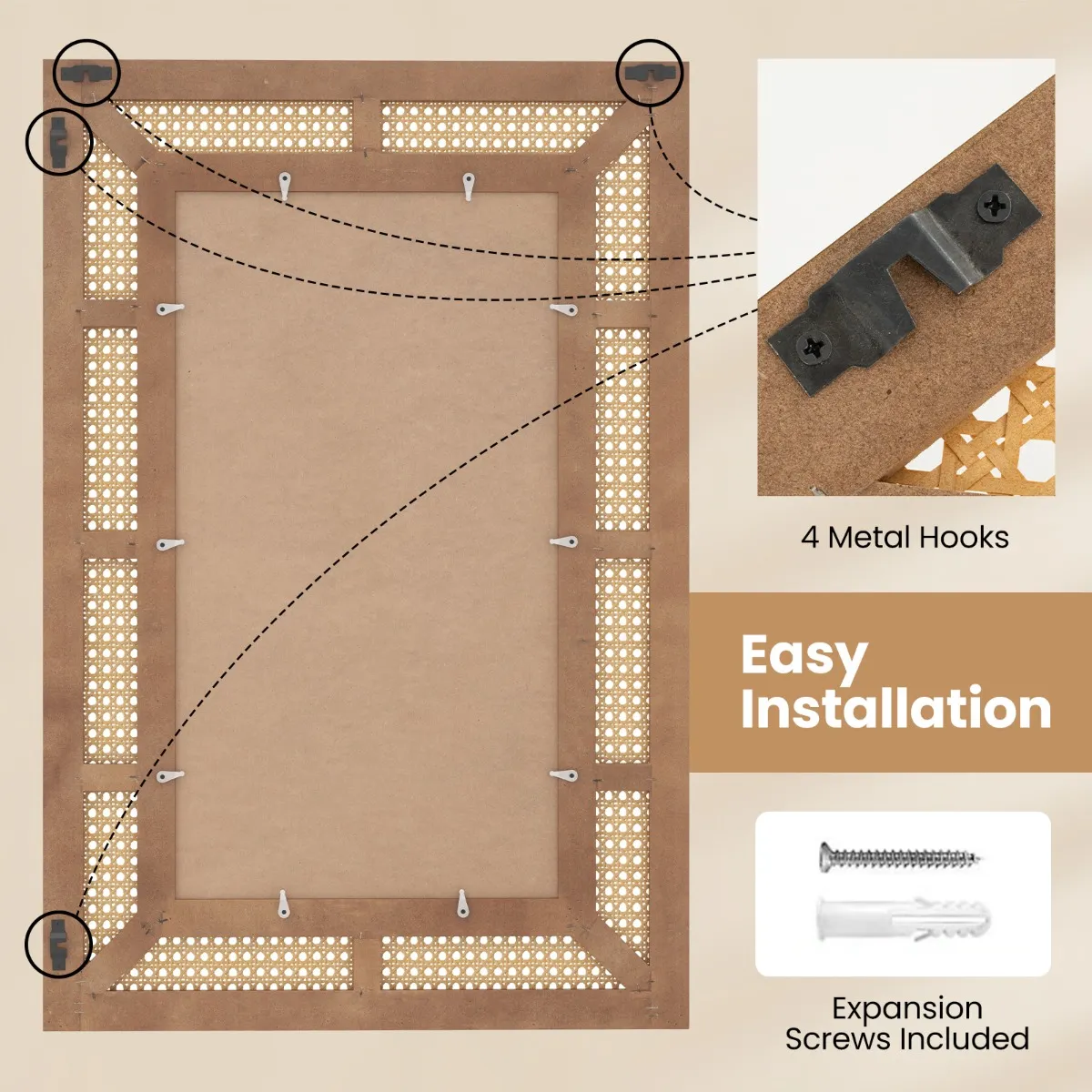 Stap in een wereld van rustieke charme met onze rotan wandspiegel, vakkundig ontworpen om elke ruimte in uw huis op te fleuren en te vergroten.
