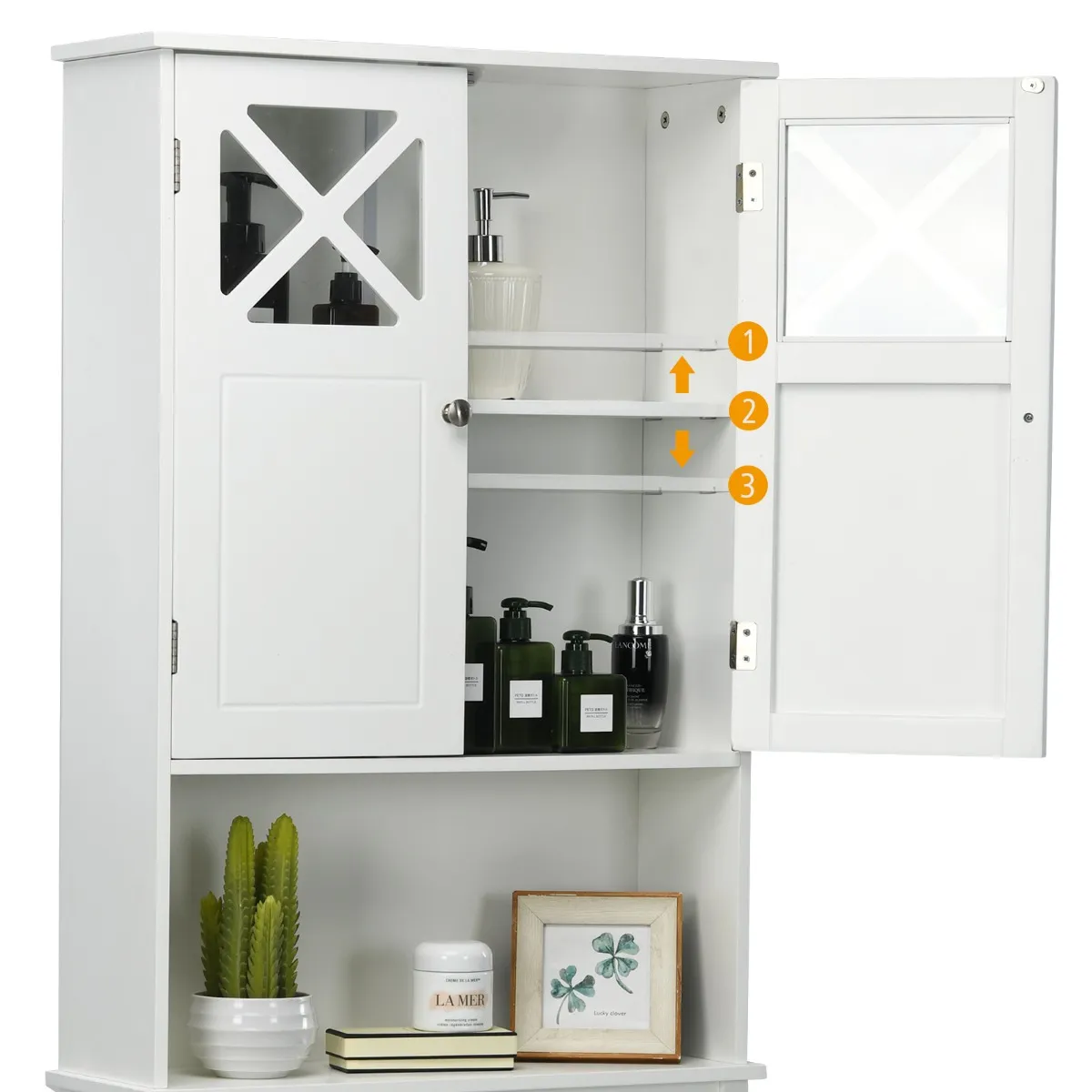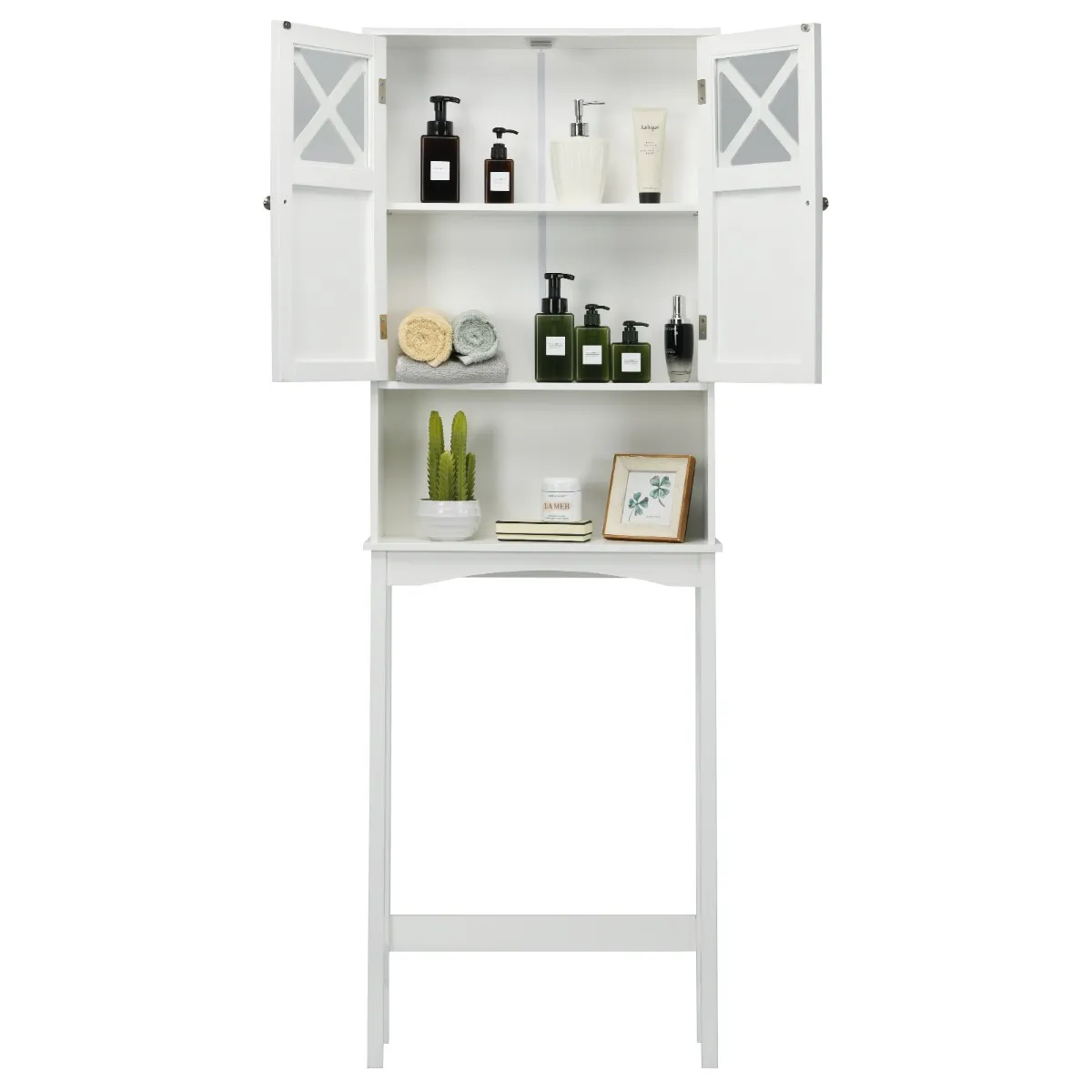 Het over het toilet opslagrek zal u van grote ruimte voorzien om spullen te plaatsen zodat u van een opgeruimde badkamer kunt genieten. Ondertussen kan deze badkamer ruimtebespaarder met gehard glazen deur niet alleen stof uit de kast houden, maar is het ook handig om te vinden wat u nodig heeft. Deze open plank biedt snelle toegang tot badbenodigdheden wanneer u ze nodig hebt. Ontworpen met verstelbare plank en onderbalk, kan de badkamer organizer op te slaan benodigdheden van verschillende hoogtes. Bovendien maakt het stevige frame in combinatie met het anti-kantelmechanisme de badkamer organizer stevig en stabiel. Deze witte wandkast combineert perfect charme en functionaliteit. Of het nu een badkamer of een wasruimte is, het is een goede organizer.
