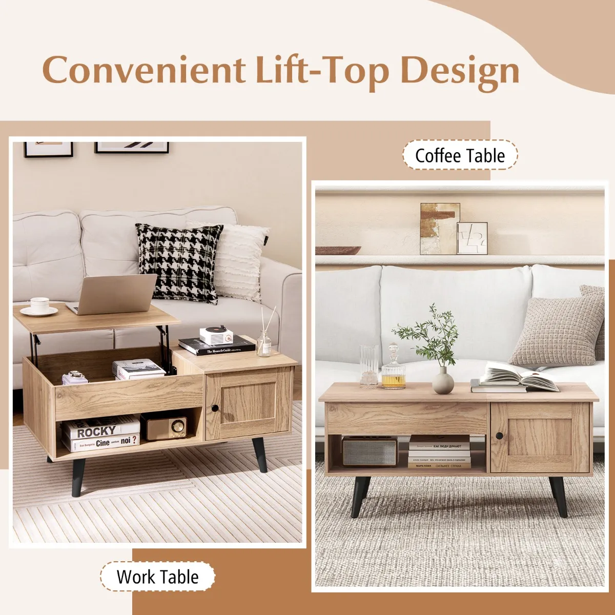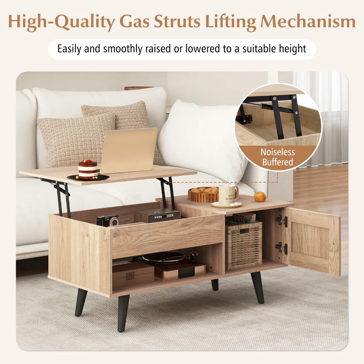【Praktisch lifttop ontwerp】 De salontafel is uitgerust met een gasliftmechanisme, waardoor het blad gemakkelijk omhoog en omlaag kan worden gebracht van 46 tot 60 cm. Dit doordachte ontwerp verandert je salontafel in een informele werkplek.