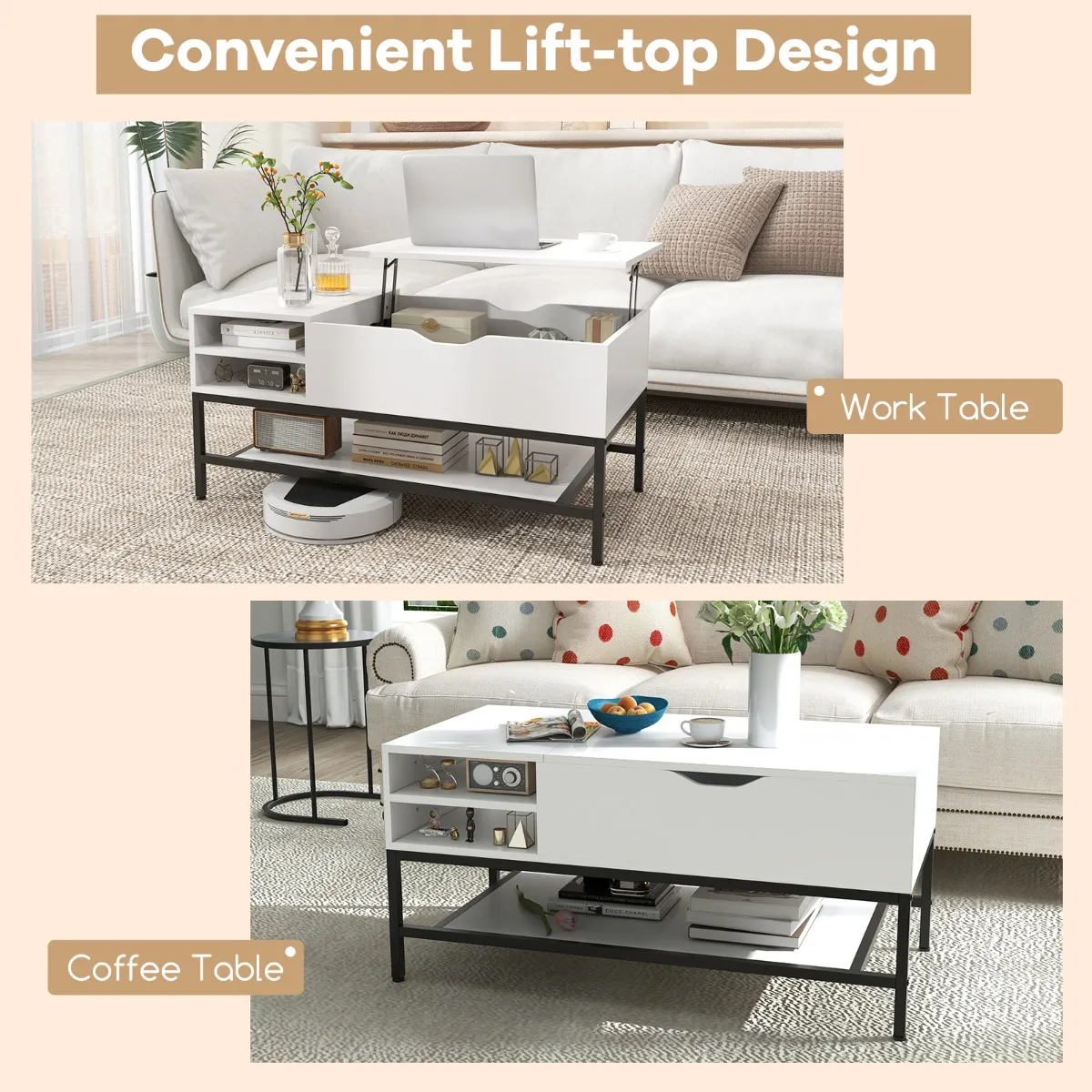 【Multifunctioneel gebruik】 Het is een veelzijdig middelpunt dat de stijl van je woonkamer, ontvangstkamer of kantoor verbetert. Of hij nu wordt gebruikt om op te bergen, te werken of te zitten, deze opvouwbare salontafel is een ideale keuze.