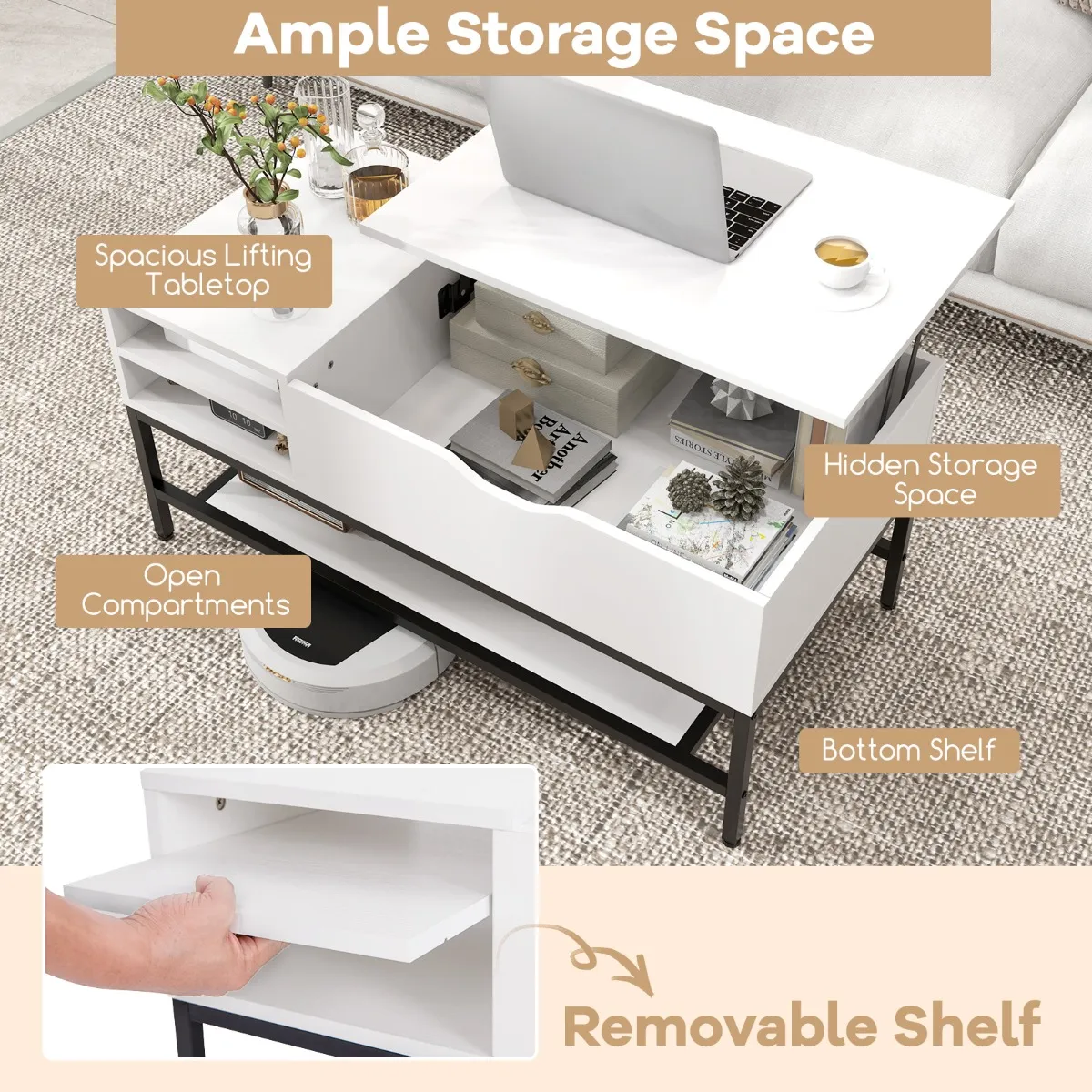 【Verwijderbare plank】 De hefbare salontafel heeft een verwijderbare plank en biedt flexibele opbergoplossingen die passen bij jouw behoeften. Van tijdschriften tot cd’s tot spelcontrollers, je kunt verschillende benodigdheden op een praktische manier organiseren.