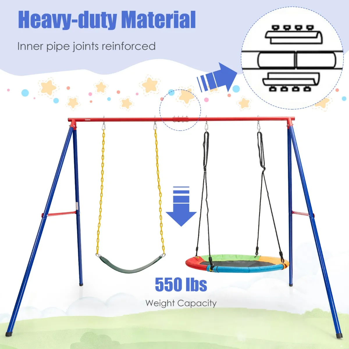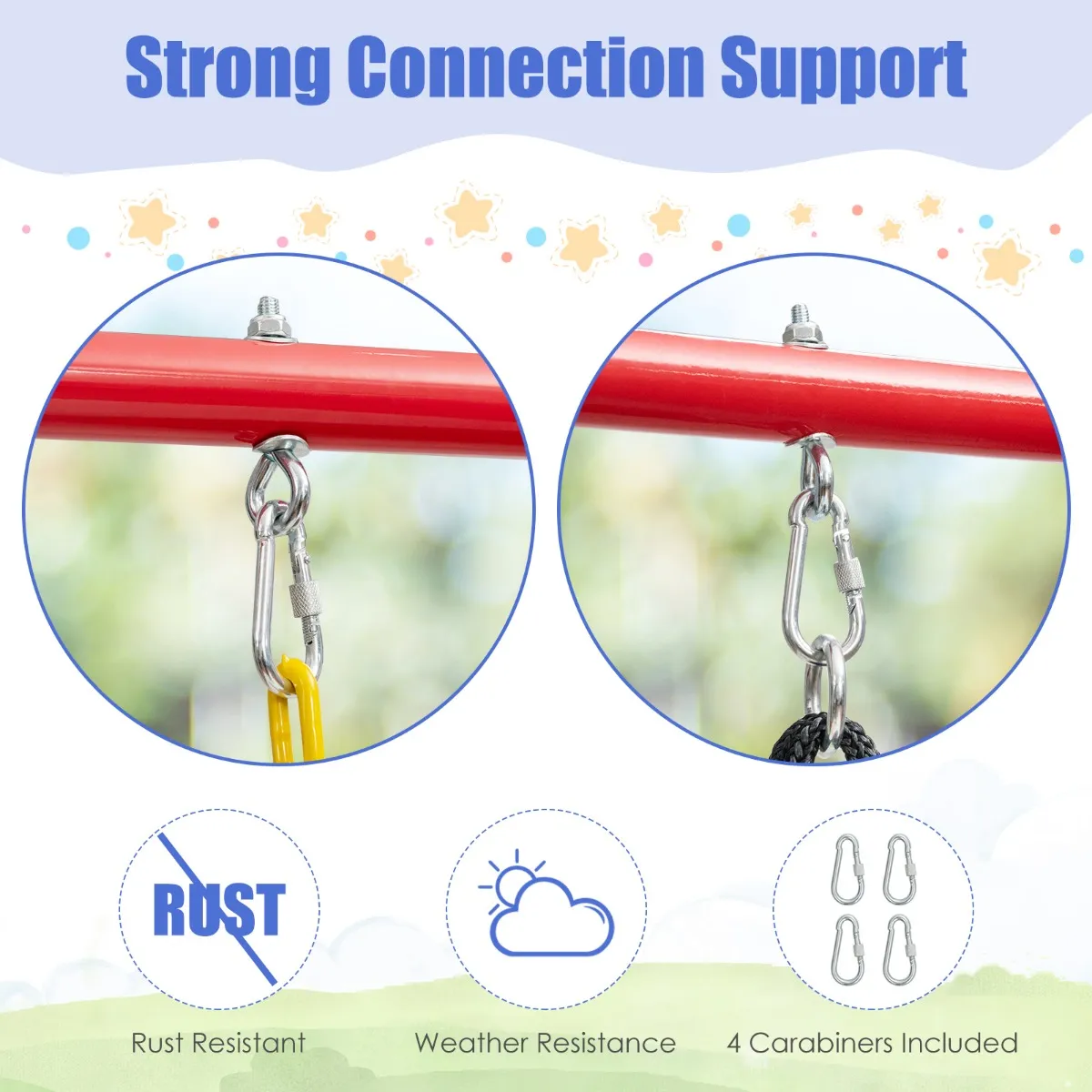 Veelzijdige compatibiliteit: Ons schommelframe is compatibel met de meeste schommeltypes, waaronder schotelschommels, nestschommels en meer. Breid de mogelijkheden van het outdoorspel uit en bied je kinderen een breder scala aan schommelopties.