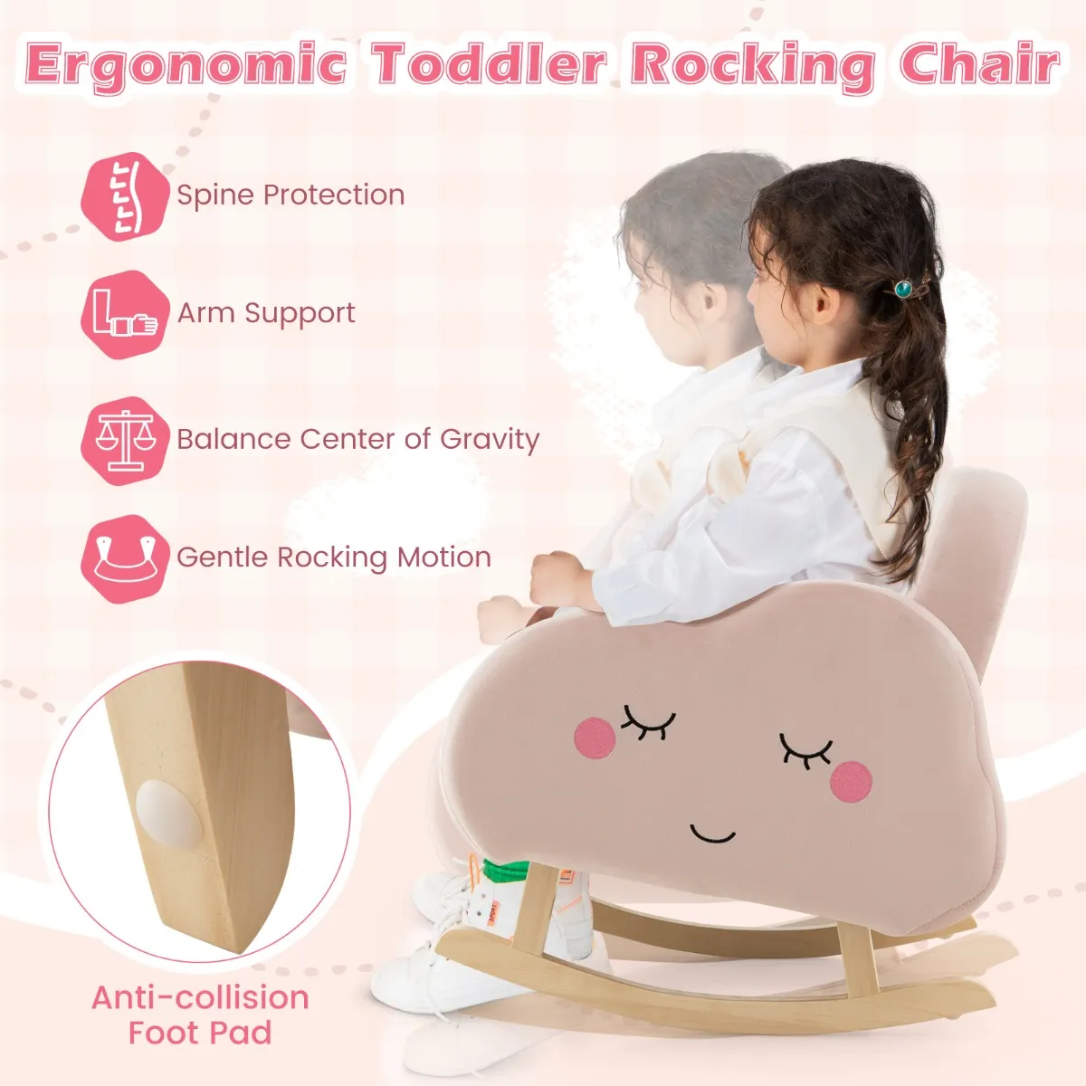 Je kleintje kan heen en weer schommelen in onze ergonomische schommelstoel. Hij is ontworpen met een gebogen rugleuning, wolkvormige armleuningen en een gewatteerde zitting, zodat kinderen een goede zithouding kunnen ontwikkelen. Hoogwaardig Nederlands fluweel en springend schuim zorgen voor optimaal comfort. Het massief houten onderstel met zijn verfijnde vakmanschap biedt duurzaam schommelen en een hoog draagvermogen van 50 kg. Zo kunnen kinderen jarenlang plezier beleven aan het schommelen.