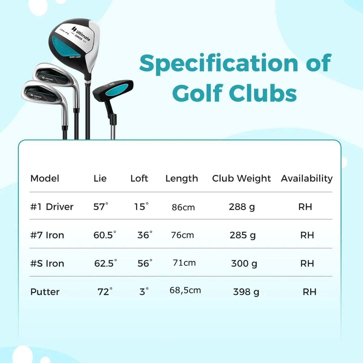 【Complete junior-golfset】Deze golfclubset is speciaal ontwikkeld voor kinderen van 8 tot 10 jaar en biedt alle benodigde clubs voor een leuke en spannende golfervaring. Het omvat een golfstandtas met regenhoes, een driver met racketkap, een 7-delige ijzer, een S-ijzer en een putter.