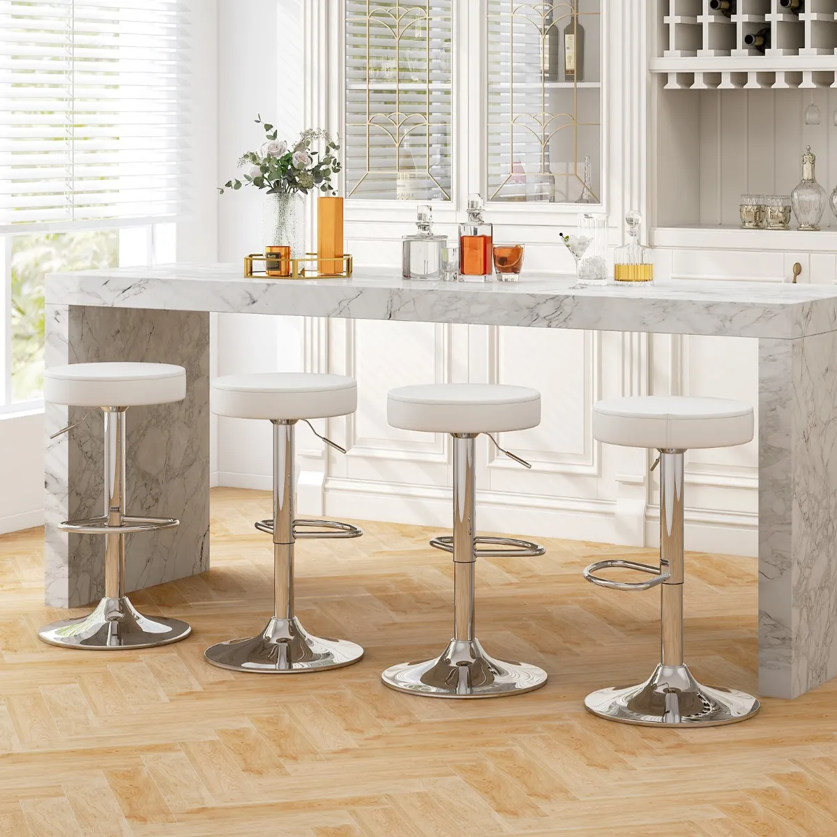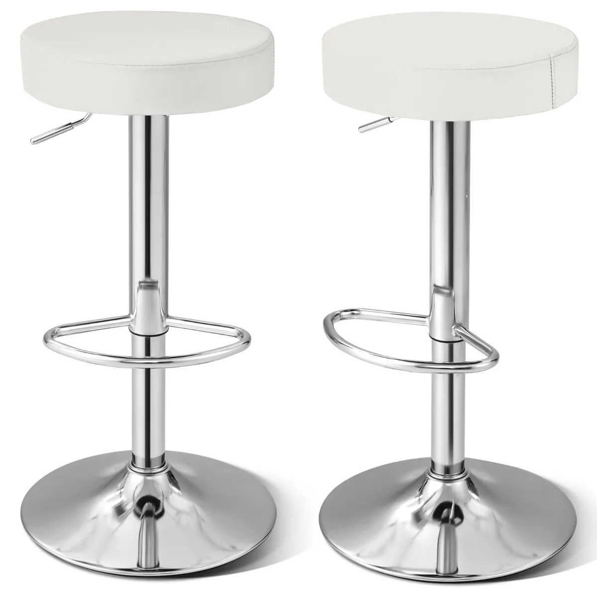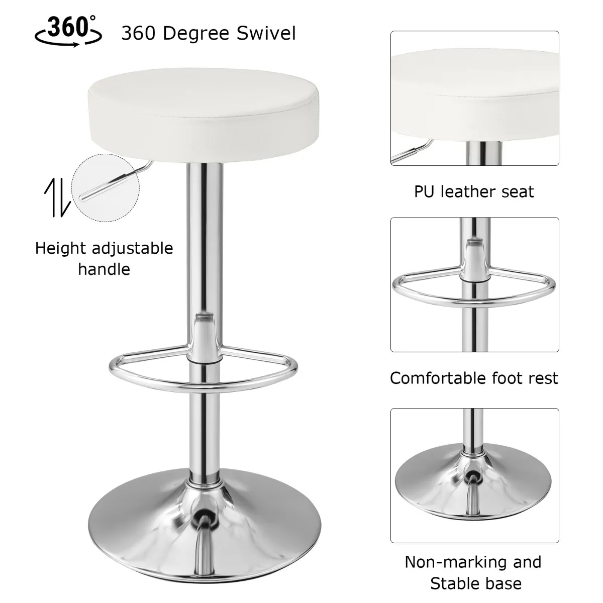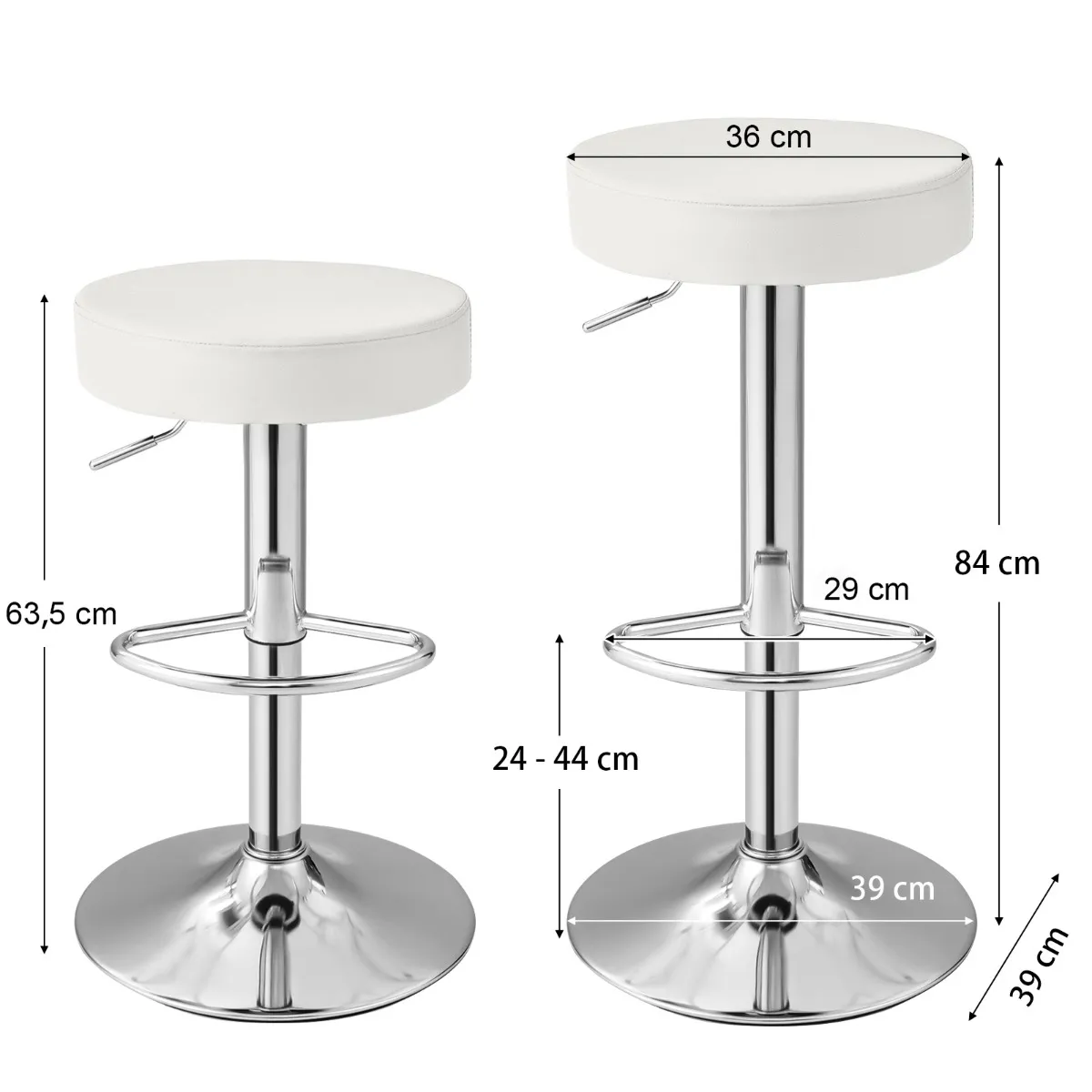 Onze voor comfort en elegantie ontworpen kroegkrukset biedt gezellige stoelen, die met zacht schuim gevoerd zijn en voor een vleugje luxe met PU-leer bekleed zijn. De hoogte van elke barkruk kan van 63,5 cm tot 84 cm worden ingesteld en is geschikt voor mensen van verschillende afmetingen. Geniet van de vrije 360°-rotatie van elke rugvrije barstoel, aangevuld met een ondersteunende voetensteun, die tot betere zitgewoonten stimuleert. Elke pubstoel is ontworpen voor duurzaamheid en beschikt over een brede basis en een antislip rubberen ring, die stabiliteit en een draagvermogen van 115 kg garanderen. Naar wens is de barkrukset perfect voor keuken, bar, café en meer. De aanbevolen tafelhoogte bedraagt 89 cm tot 110 cm.
