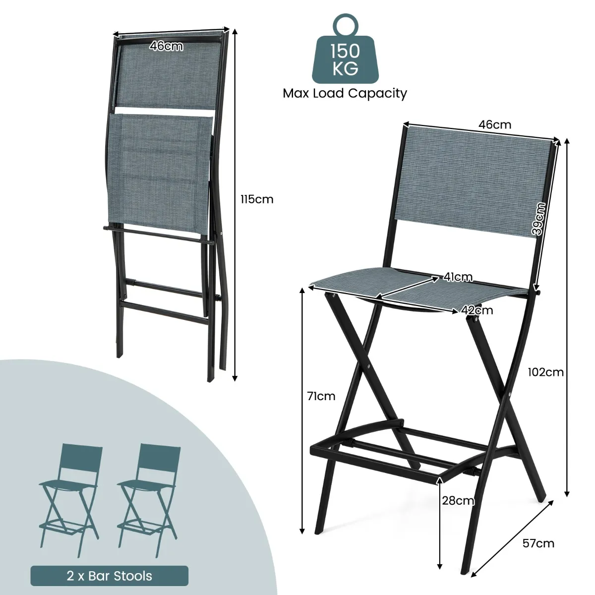Eenvoudig en snel opvouwen: Zonder gereedschap kun je elke barkruk eenvoudig opvouwen tot een vlakke toestand van 46 x 10 x 115 cm. Bovendien vergemakkelijkt het lage gewicht de draagbaarheid. Overigens heeft de barkrukset geen installatie nodig.