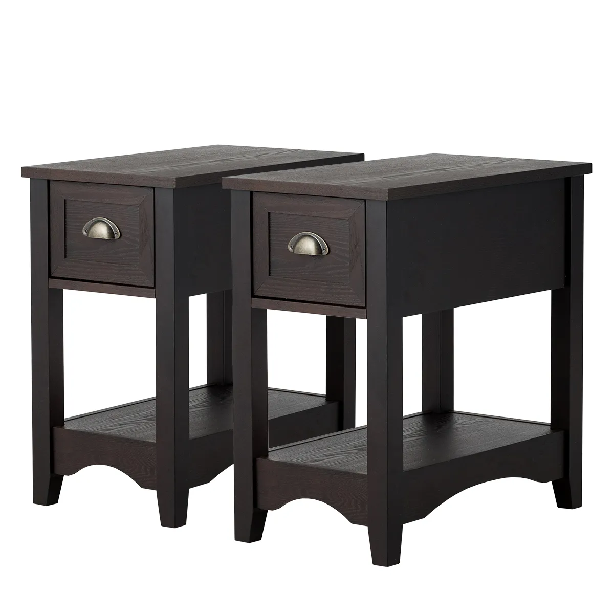 Grote opbergruimte: Onze bijzettafel beschikt over ruime opbergruimte met een diepe lade en een rek aan de onderkant. Hij kan naast je bed of bank worden geplaatst en daar vaak gebruikte voorwerpen zoals bureaulampen, afstandsbedieningen enz. worden getoond. Deze bijzettafel verhoogt het gebruik van de ruimte, vooral voor kleine eenheden of woningen aanzienlijk.