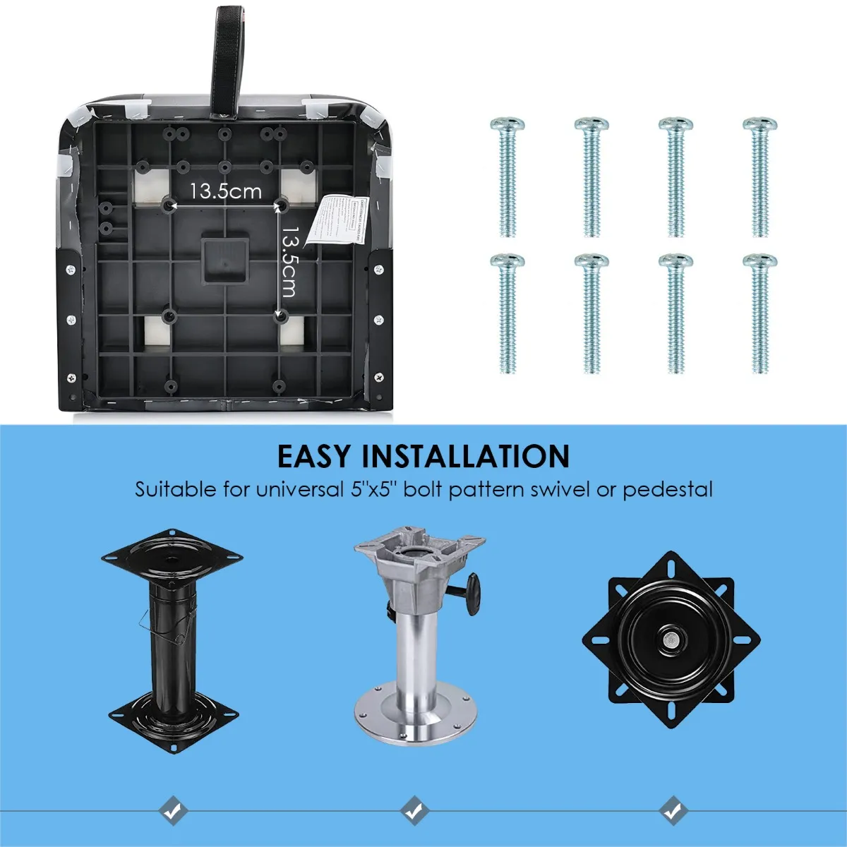 【Weerbestendig materiaal voor buitengebruik】: Bekleed met premium PVC en PP, kan deze vissersboot stoel bestand zijn tegen langdurige ontberingen van een mariene omgeving. Het weerbestendige oppervlak zorgt voor langdurig gebruik buitenshuis, en de strakke stiksels vakmanschap vitrines blijvende duurzaamheid.