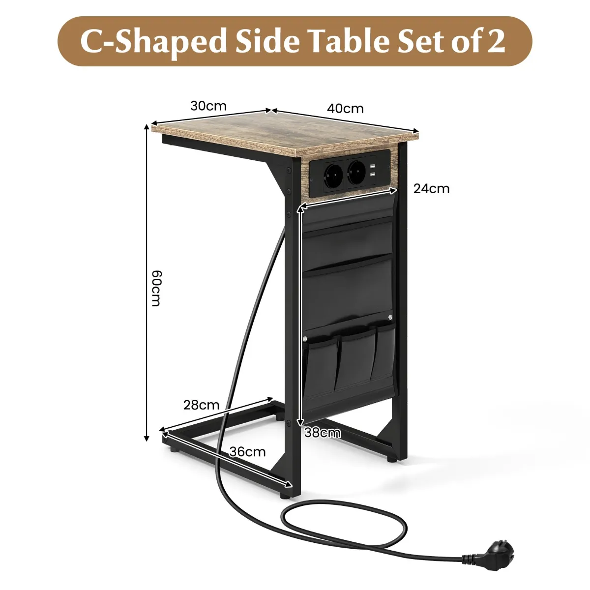 Onze set van 2 veelzijdige bijzettafels is ontworpen om je leven gemakkelijker te maken met zijn innovatieve functies. Laad je elektronische apparaten eenvoudig op met het geïntegreerde oplaadstation met 2 stopcontacten (220-240V 10A) en 2 USB-poorten (5V 2,1A) en een netsnoer van 200 cm en 2 grote en 3 kleine vakken. Het slanke, elegante ‘C’-ontwerp bespaart ruimte en biedt extra opbergruimte. Het dikke, braamvrije blad, het versterkte metalen frame en de verstelbare voetsteunen zorgen voor stevigheid.