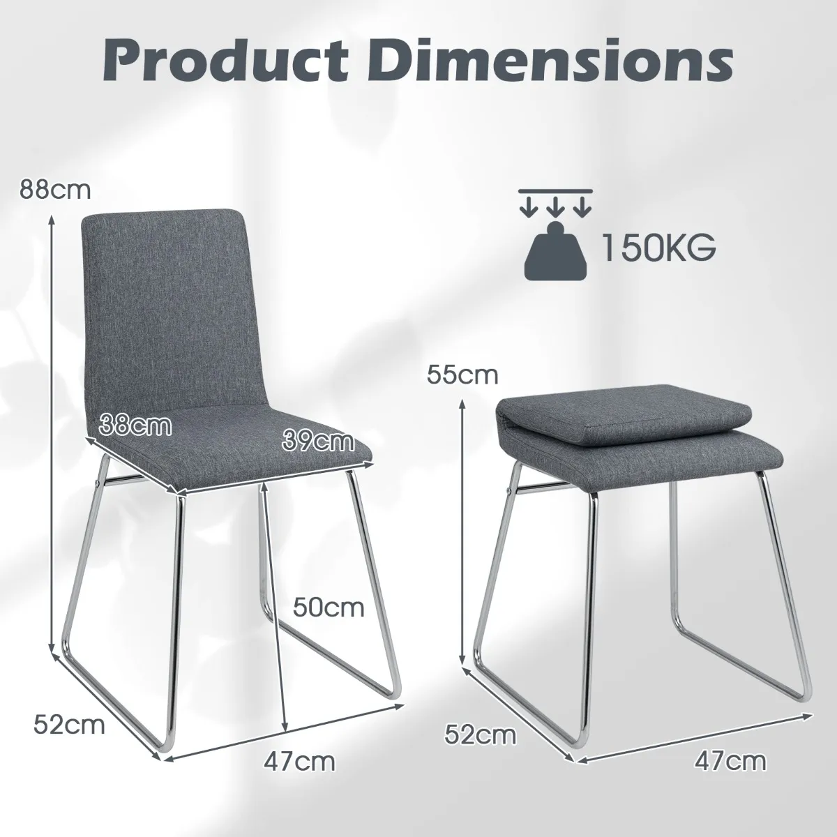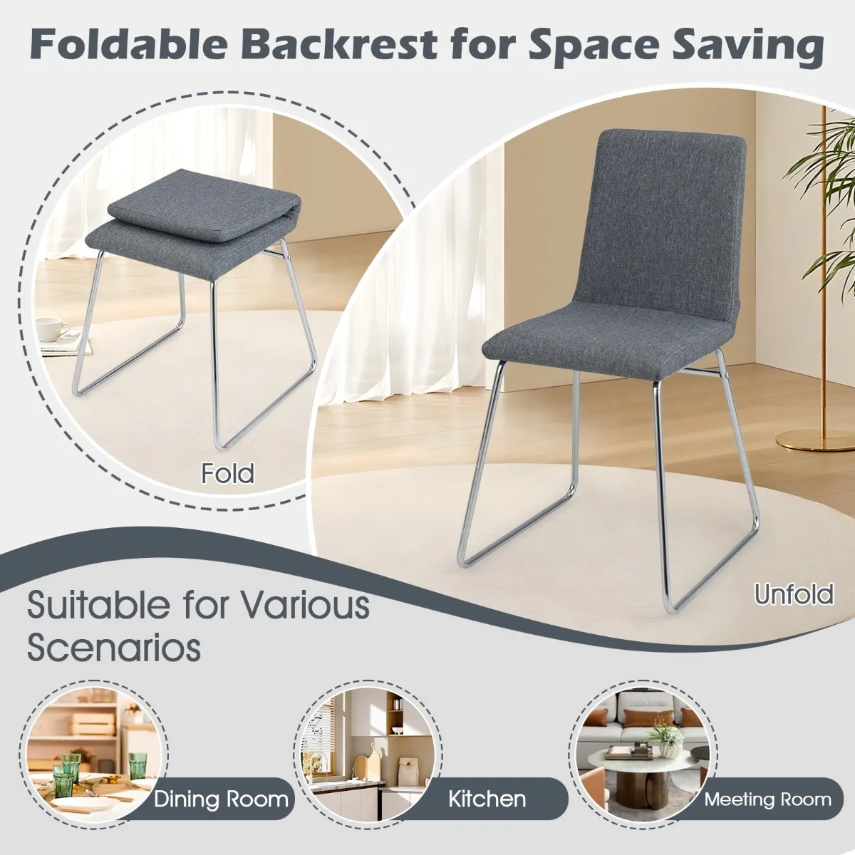 Geniet van comfortabele zitplaatsen en comfort met onze stijlvolle eetkamerstoelen. Elk van de stoelen beschikt over een brede zitting met een dicht schuimkussen, dat buitengewoon comfort en grip biedt. De hoge rugleuning past zich perfect aan je lichaam aan en zorgt voor uitstekende grip en ontspanning bij lange maaltijden. Tegelijkertijd is de inklapbare rugleuning perfect om ruimte te besparen wanneer hij niet wordt gebruikt, zodat je je eethoek eenvoudig kunt verkleinen of maximaliseren. Overigens is de slijtvaste stof gemakkelijk te reinigen, zodat je stoelen er lange tijd als nieuw uitzien. Deze moderne accentstoelen zijn een perfecte aanvulling voor je eetkamer, keuken of zelfs een vergaderruimte.