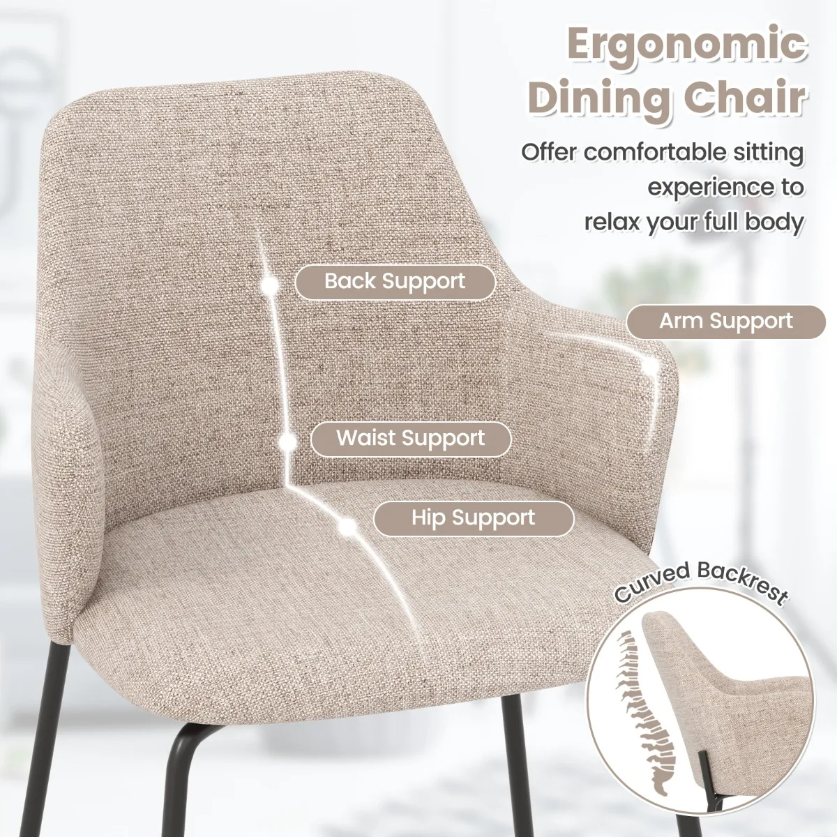 Onze speciaal ontworpen eetkamerstoel beschikt over een comfortabele rugleuning, een brede zitting en armleuningen die ondersteuning bieden voor taille, heupen en armen. De gebogen rugleuning past perfect bij je lichaamsvorm en zorgt voor optimale ontspanning. Zowel de zitting als de rugleuning zijn gevuld met schuim voor een gevoerde ondersteuning, die zowel zacht als verfrissend is. Onze eetkamerstoel is gemaakt van een stabiel metalen frame en slijtvast weefsel. Daarom is hij bestand tegen de dagelijkse behoeften en is hij perfect voor elke ruimte in je huis, of het nu de woonkamer, eetkamer of slaapkamer is.
