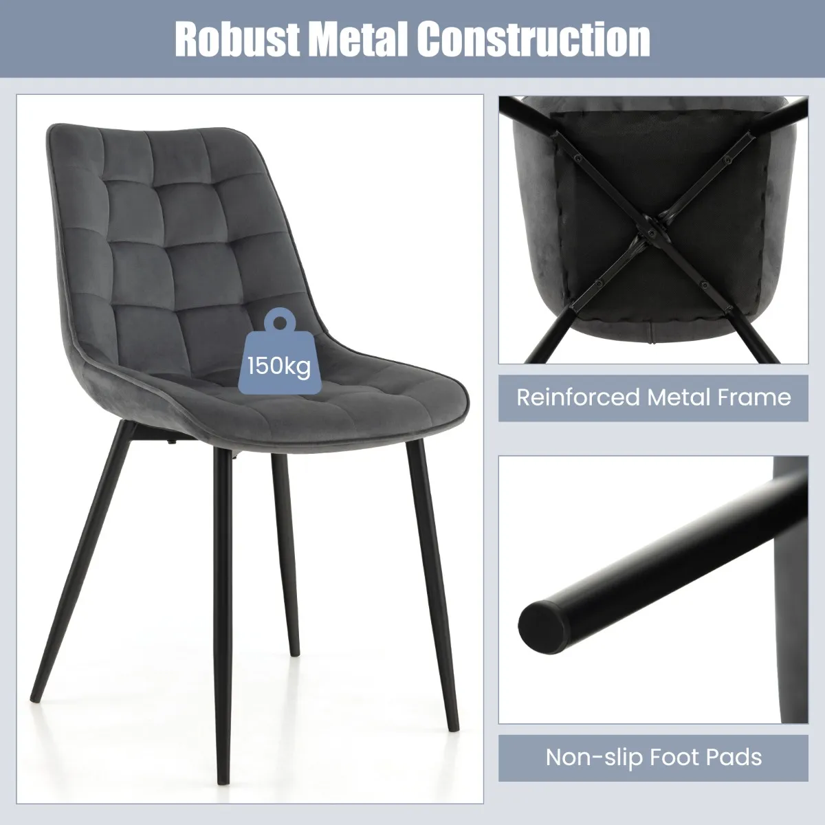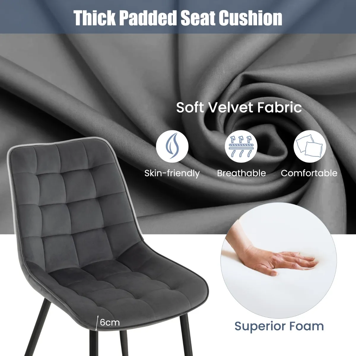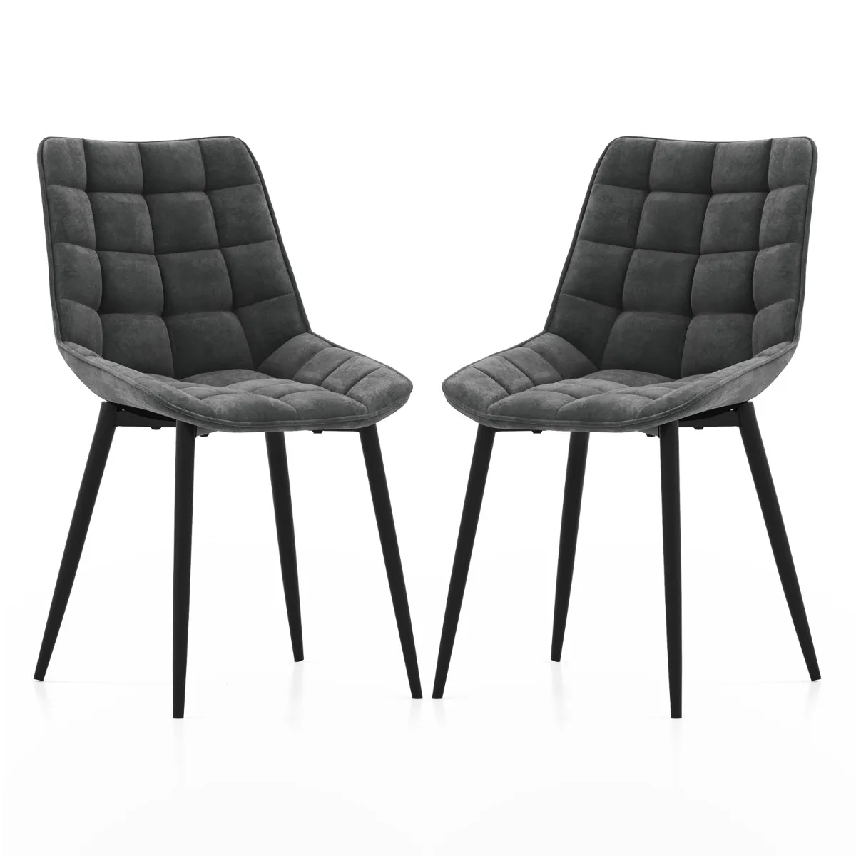 Set Van 2 Gestoffeerde Eetkamerstoelen Met Sponskussen Met Hoge Dichtheid Stevige Metalen Poten Verstelbare Voetsteunen Grijs