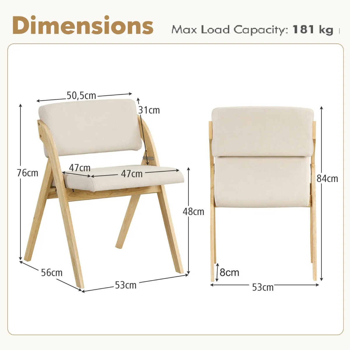 Het zachte polyesterweefsel en de elastische schuimvulling van de dik gevoerde rugleuningen en zittingen zijn comfortabel en duurzaam voor langdurig gebruik. De keukenstoelen zijn voorzien van stevige rubberhouten poten die stabiliteit en elegantie bieden en tot 181 kg ondersteunen. Deze klapstoelen zijn perfect voor kleine ruimtes en kunnen in verschillende omgevingen buiten de eetkamer worden gebruikt. Geen montage nodig – vouw hem eenvoudig uit en geniet van een snelle en gemakkelijke upgrade van uw eethoek.