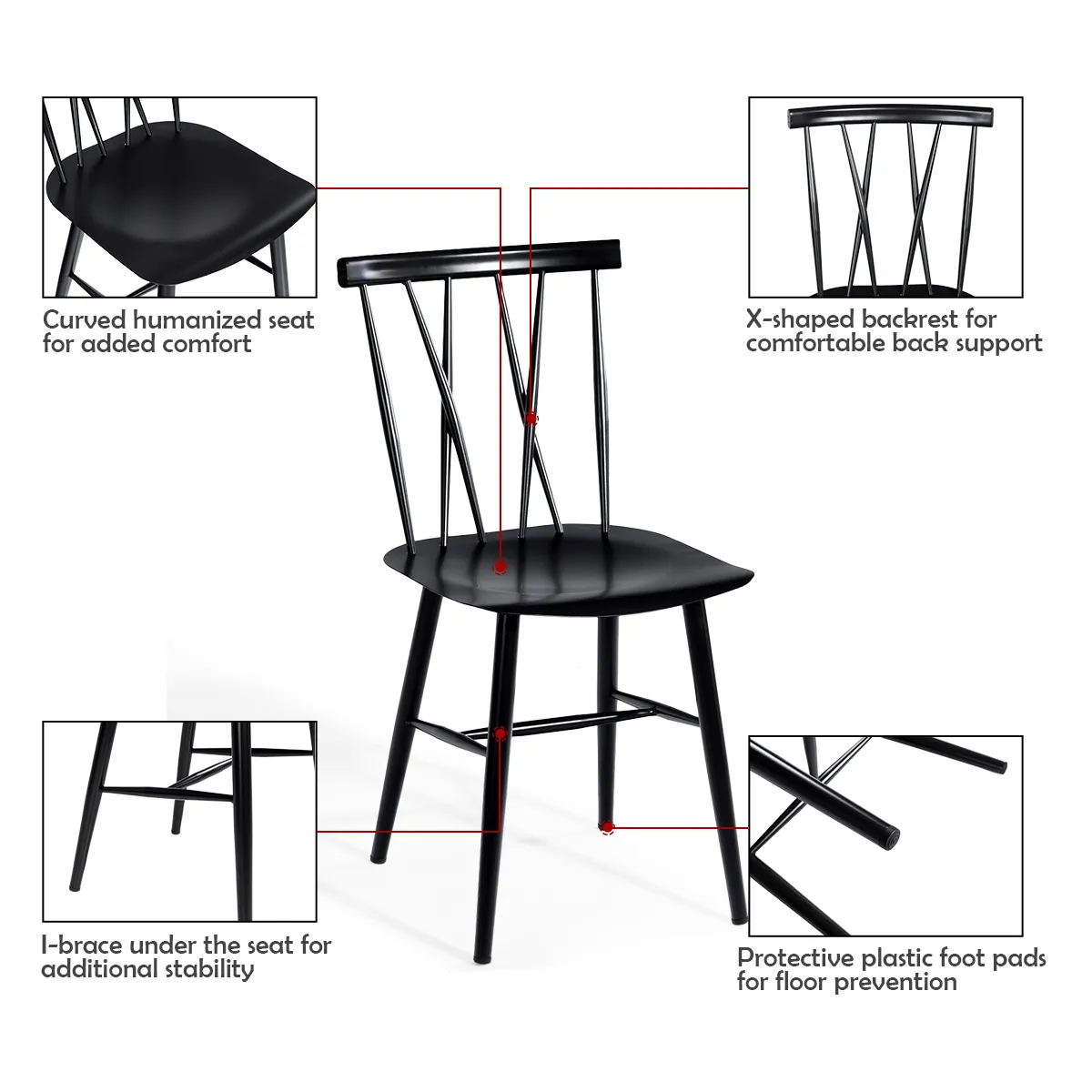 Deze set van 2 eetkamerstoelen is gemaakt van duurzaam metaal en geschikt voor langdurig gebruik. Daarnaast maakt de extra versteviging de stoel nog stabieler en zorgen de antislipkussentjes voor stabiliteit. Met hun ergonomische X-vormige rugleuning bieden deze keukenstoelen u een comfortabele ondersteuning. Daarnaast hebben deze metalen stoelen een industriële uitstraling en kunnen ze op diverse plekken gebruikt worden zoals eetkamer, bar, café en meer. Montage en onderhoud zijn eenvoudig en ideaal voor thuisgebruik.