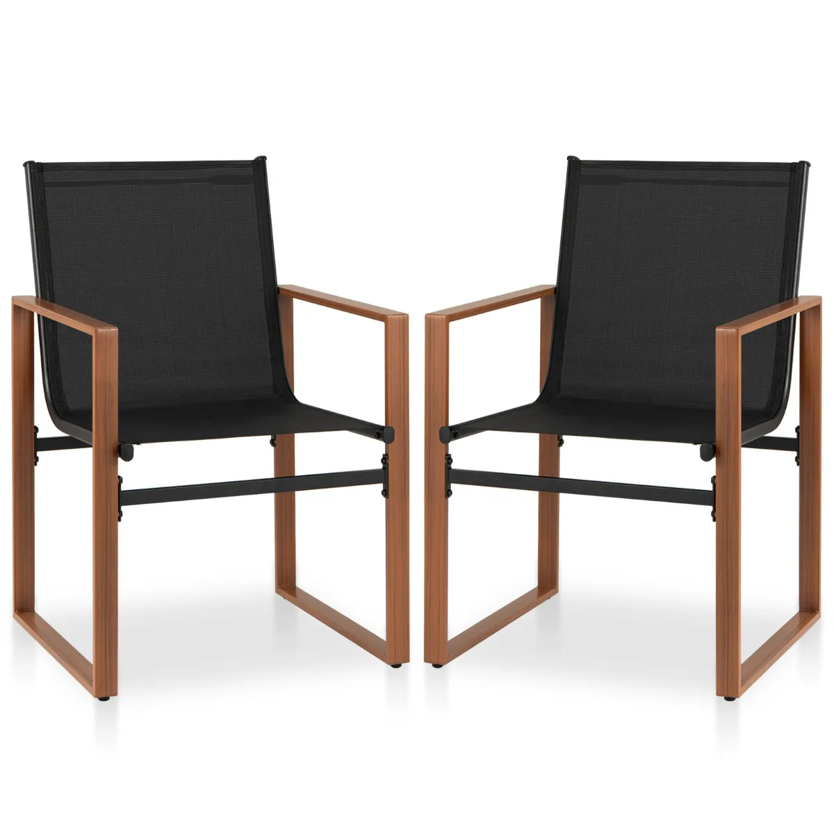 Onze set van 2 eetkamerstoelen voor buiten met ergonomische rugleuning heeft een optimale leunhoek voor een ongeëvenaarde ondersteuning van je rug. De geïntegreerde armleuningen en het brede zitgedeelte zorgen voor een comfortabele zit. Gemaakt van ademende stof, houden de zitting en rugleuning je koel, zelfs tijdens lange uren zitten. De stof is slijtvast en vervaagt niet bij langdurig gebruik. De afwerking met houtnerf zorgt voor duurzaamheid en esthetiek.