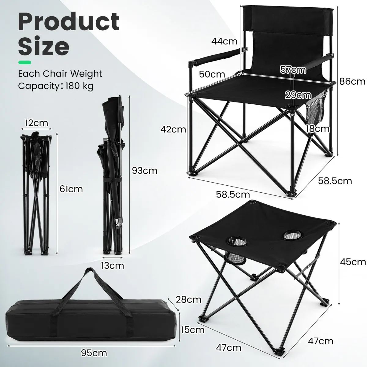 - Inhoud verpakking: 2 x Campingstoelen1 x Campingtafel1 x Draagtas1 x Gebruiksaanwijzing