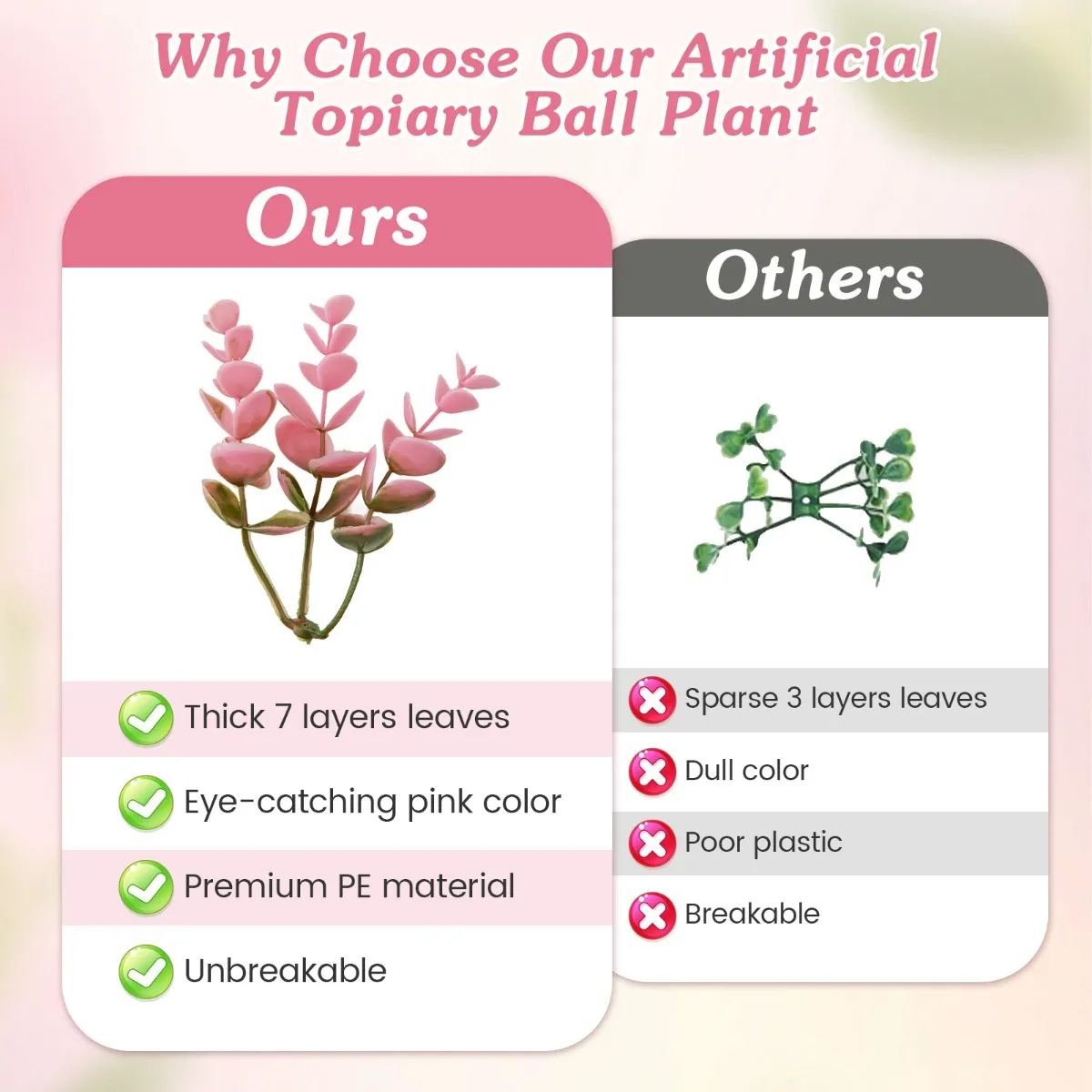 【Weelderig en charmant uiterlijk】 Het 2-pak eucalyptusballen heeft 7-lagige bladeren, waardoor ze er ongelooflijk dicht uitzien. En de tuinbol van 44 cm in een unieke roze kleur zal opvallen tussen de rest van de saaie exemplaren en een opvallende scène creëren waar hij ook staat.