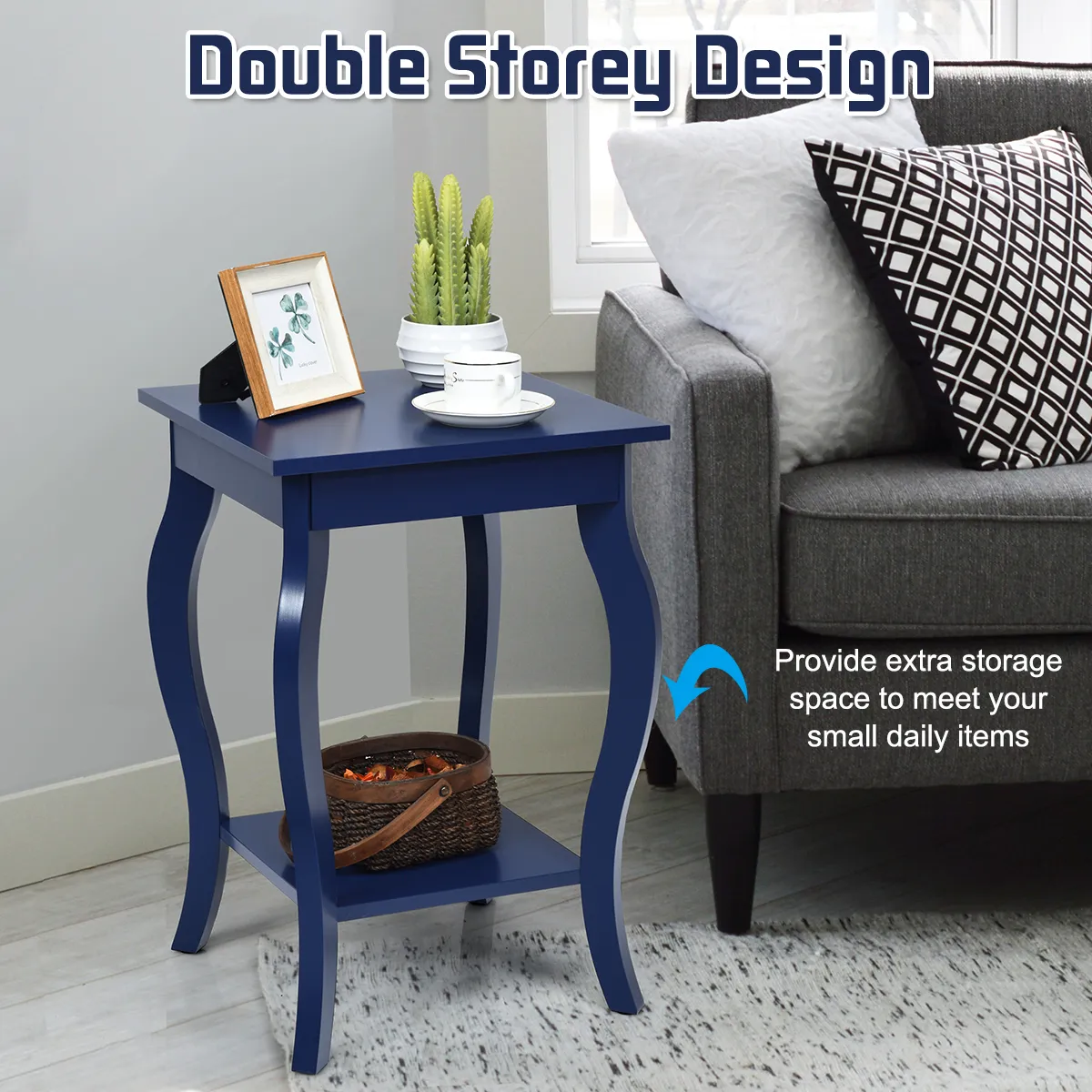 【Open opbergruimte】Het 2-laags ontwerp van de vierkante banktafels biedt voldoende ruimte om spullen netjes te ordenen. De open plank is niet alleen handig om tentoon te stellen, maar maakt het ook gemakkelijker om veelgebruikte spullen eruit te halen.