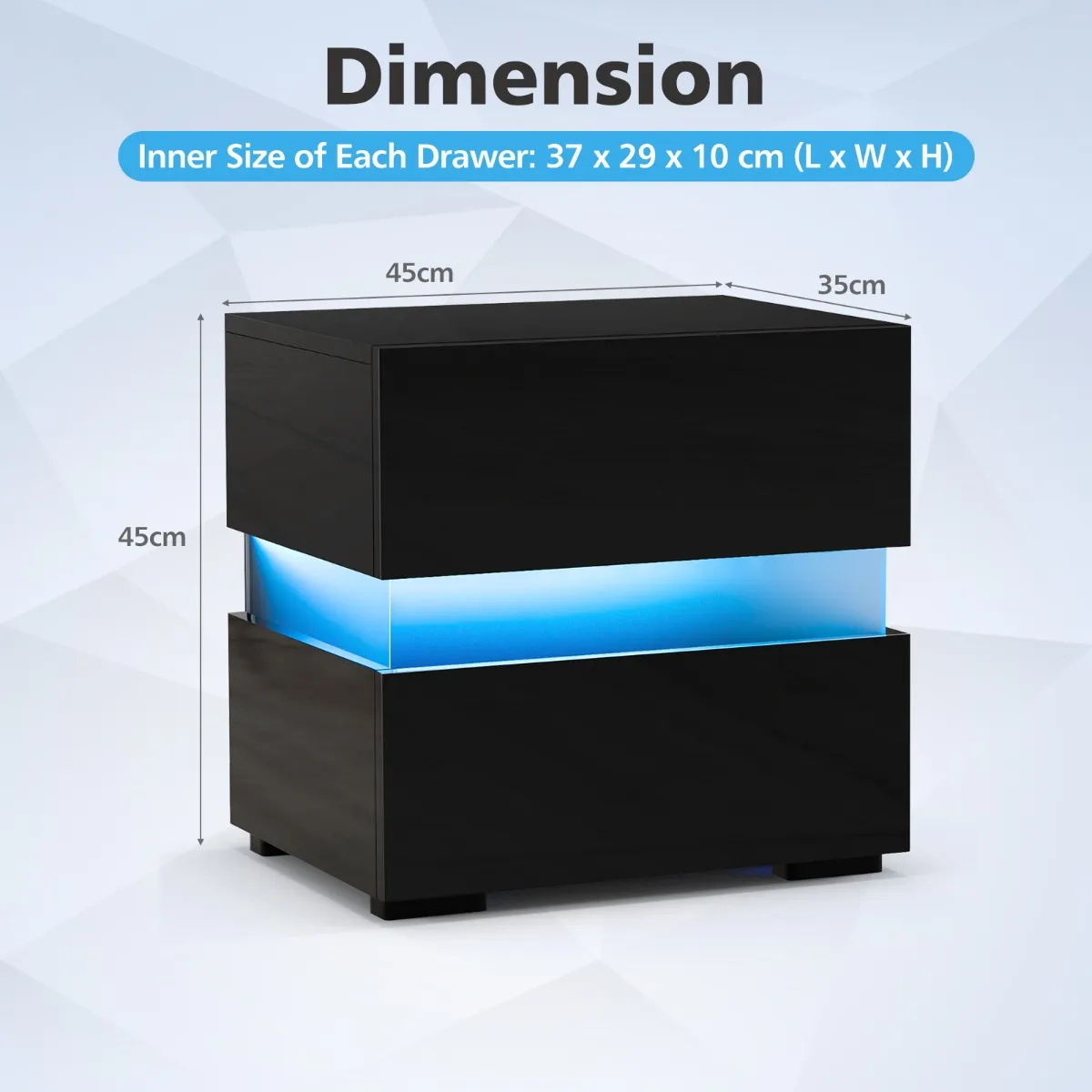 Het heeft een breed tafelblad en 2 lades waarin veel spullen kunnen worden opgeborgen. Dankzij de kabelmanagementopening kunnen diverse kabels worden opgeborgen zonder dat ze in de knoop raken. Bovendien zorgen de LED-lampen voor een fantastisch lichtspektakel. Er zijn meer dan 22 dynamische modi, 20 statische kleuren en 7 directe kleuren. U kunt de draadloze RF-afstandsbediening volledig gebruiken om de snelheid op 10 niveaus en de helderheid op 5 niveaus te regelen. Het maximale bereik is 15 meter. Afhankelijk van uw wensen kan het nachtkastje gebruikt worden in de woonkamer, slaapkamer, studeerkamer en meer.