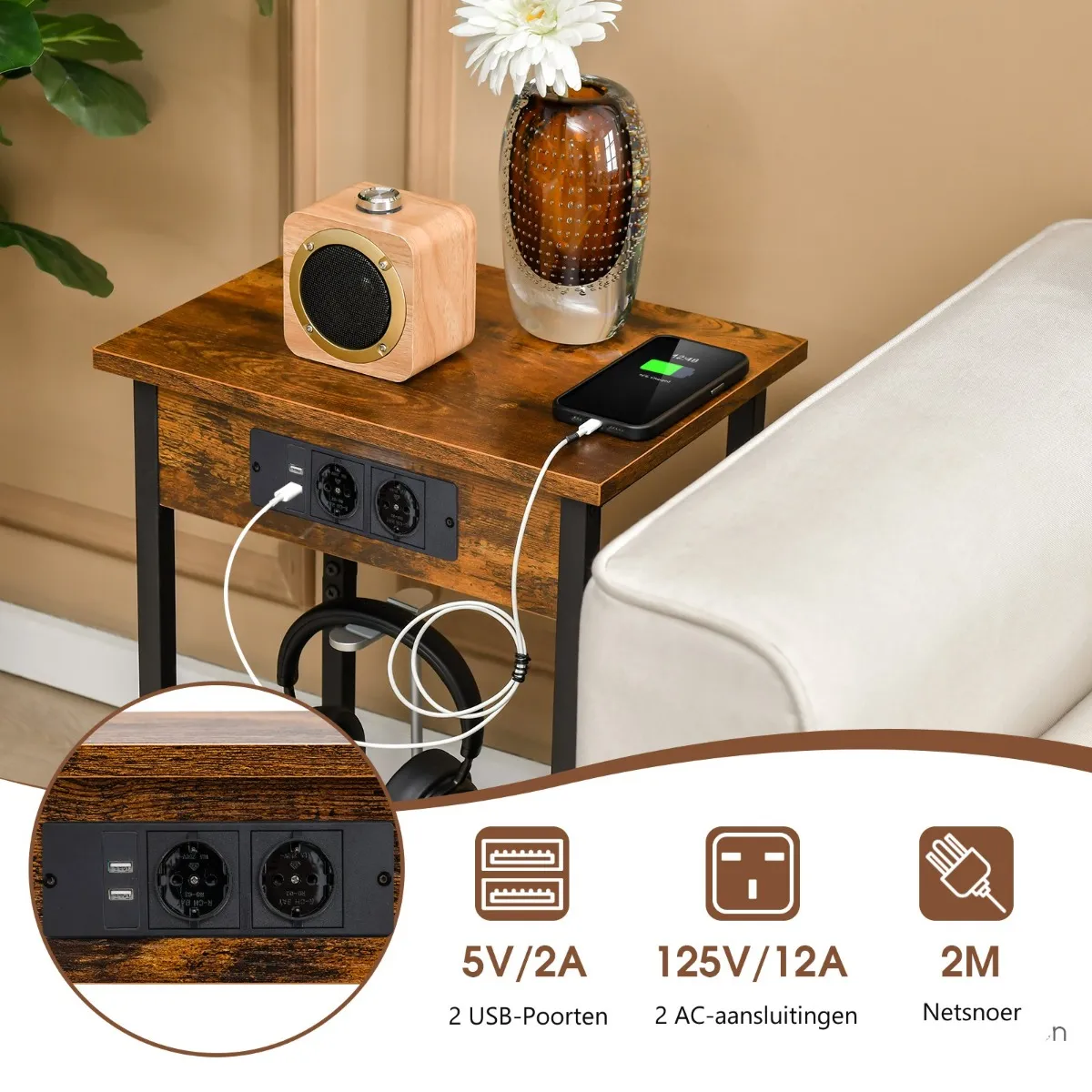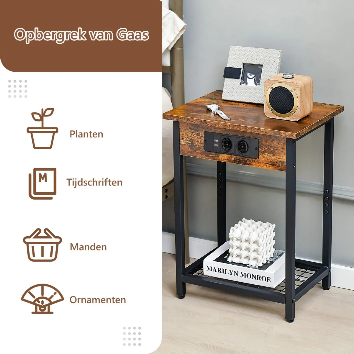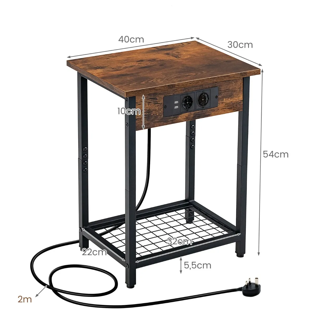 Deze 2 nachtkastjes in industriële stijl hebben dubbele opbergruimte voor al je behoeften. Ze zijn ook een praktisch oplaadstation. 2 stopcontacten en 2 USB-poorten kunnen gebruikt worden om je elektronische apparaten op te laden. Met het netsnoer van 2 m kun je ze aansluiten op een stroombron. Het metalen frame zorgt voor structurele stabiliteit en de verstelbare voetsteunen beschermen de vloer en zorgen voor stabiliteit. Je kunt ze gebruiken in je slaapkamer, woonkamer of kantoor.
