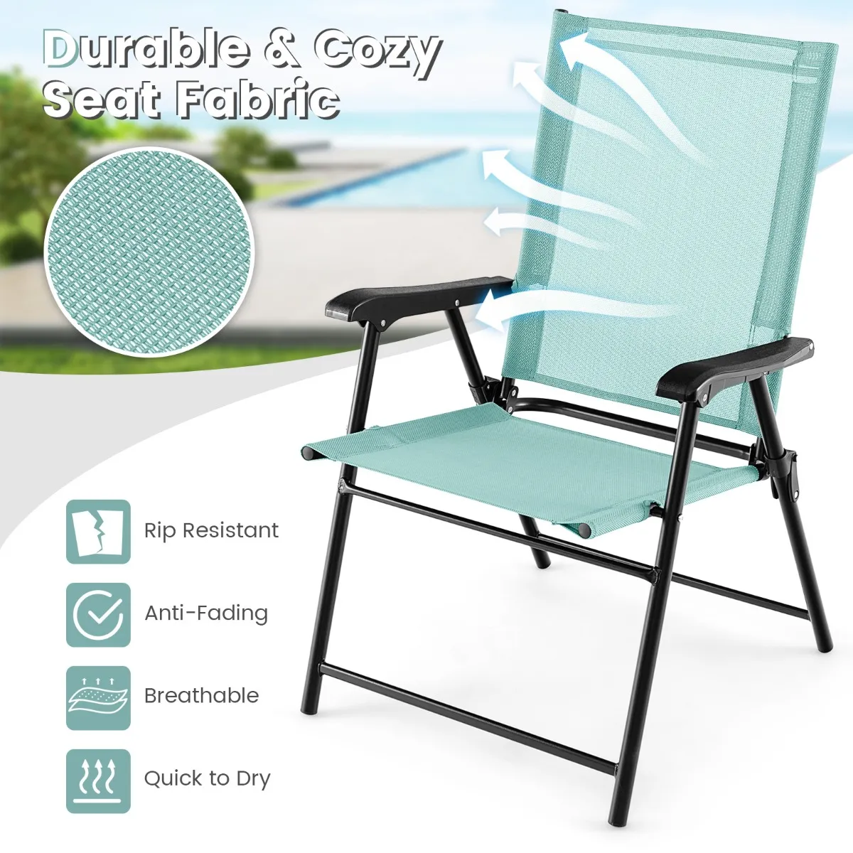 Wanneer je het pakket ontvangt, hoef je ze alleen maar uit te pakken, de stoelen eruit te halen en uit te vouwen. Deze stoelen zijn klaar voor gebruik! Deze terrasstoelen hebben ademende stof om verstikking op zomerse dagen te voorkomen. En aan de stevige, roestbestendige metalen frames kun je zien hoe stabiel ze zijn. Als je deze terrasstoelen wilt opvouwen, hoef je alleen maar de sluitingen los te maken. De stoelen kunnen dan meteen worden opgevouwen voor gemakkelijk transport en opslag.