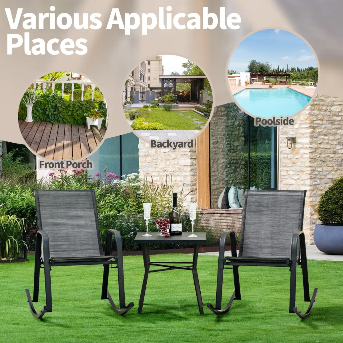 【Hoge veiligheid en stabiliteit】 Elke stoel wordt stevig ondersteund door een met kunststof besproeid en robuust metalen frame, dat roestvrij en vervormingsbestendig is. Met vloerstoppers die overslaan voorkomen, en antislip rubberen matten die de stabiliteit verbeteren, kunnen de schommelstoelen ook veilig heen en weer worden geschoven.