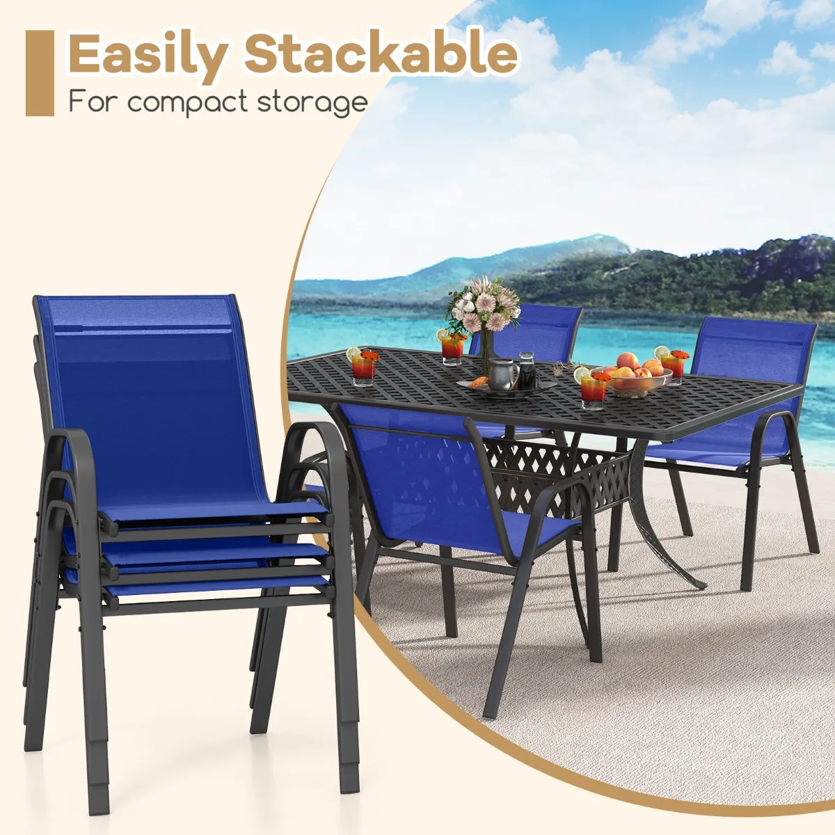 De tuinstoelen zijn gemaakt van hoogwaardige, ademende en sneldrogende stof, die bovendien scheur- en slijtvast is. De terraseetkamerstoelenset is niet alleen stijlvol, maar ook ruimtebesparend dankzij het compacte stapelbare ontwerp voor eenvoudige opslag. De tuinstoelen zijn perfect voor vrijetijdsbesteding buitenshuis en vormen een veelzijdige aanvulling op elke tuin, zwembad of balkon.