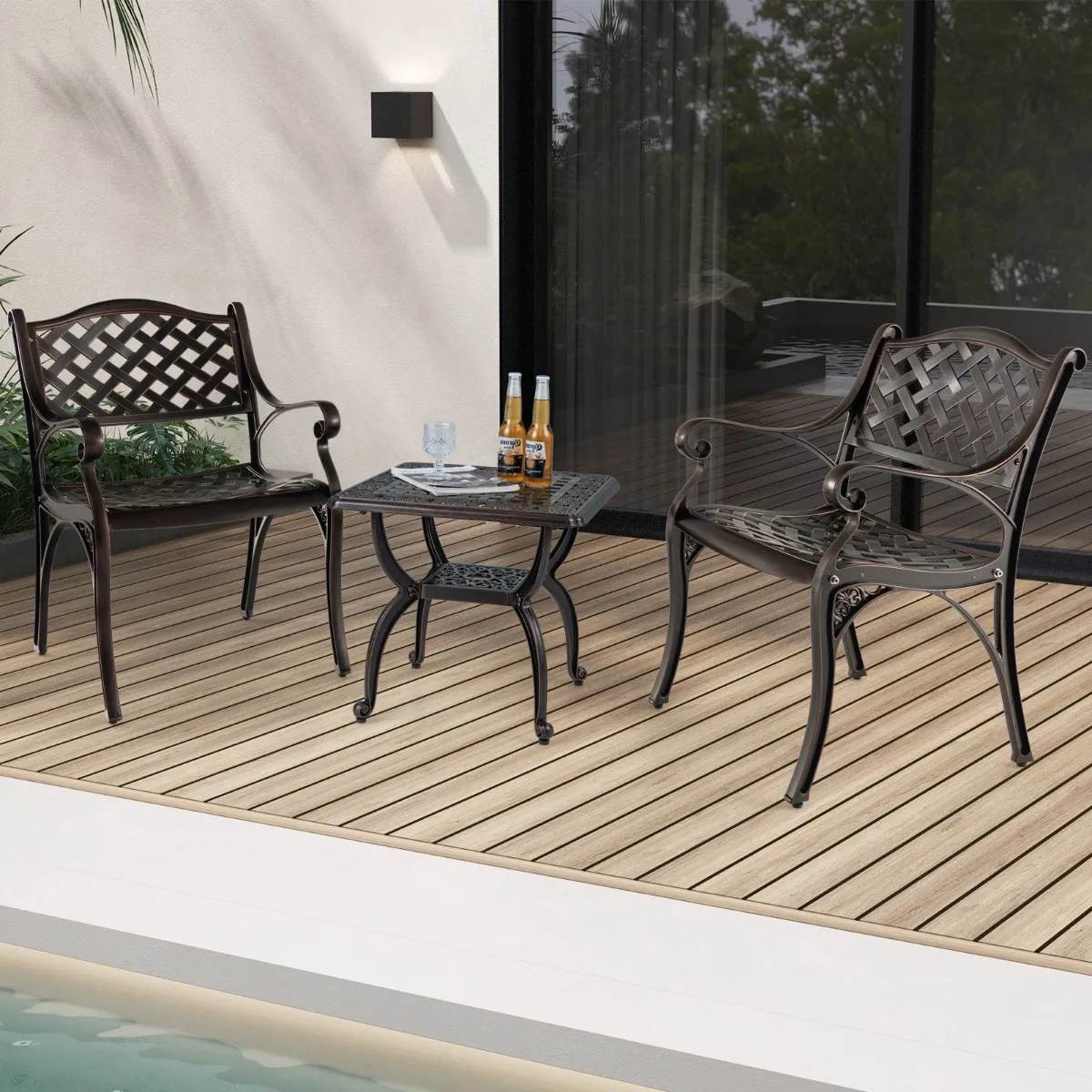 【Uitstekende afwerking】 Met zijn elegante patroon en het bronzen oppervlak is deze stoelset een praktische en visueel aantrekkelijke aanvulling voor elke buitenruimte. Bovendien bevordert het holle ontwerp van zitting en rugleuning de ventilatie en voorkomt waterophoping.