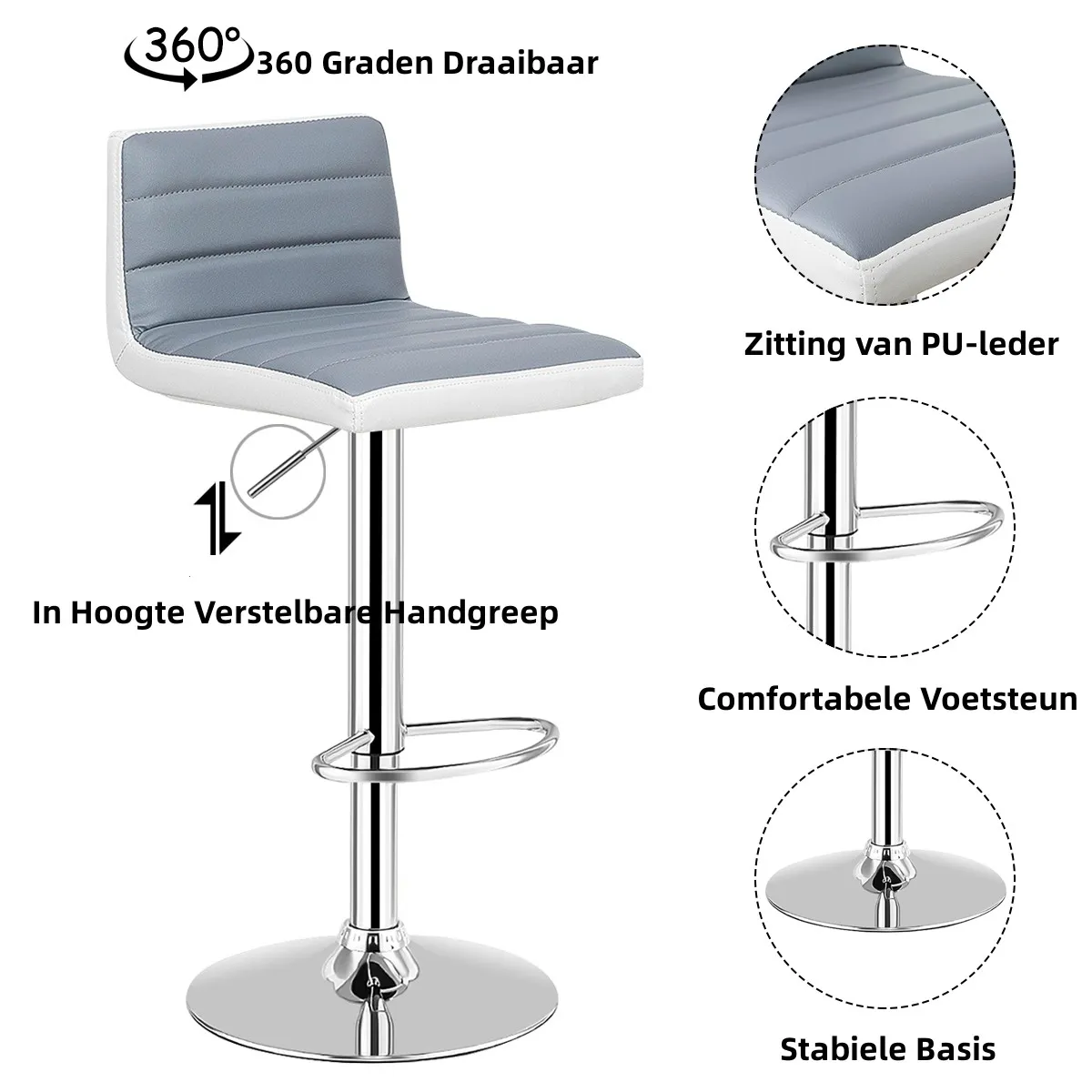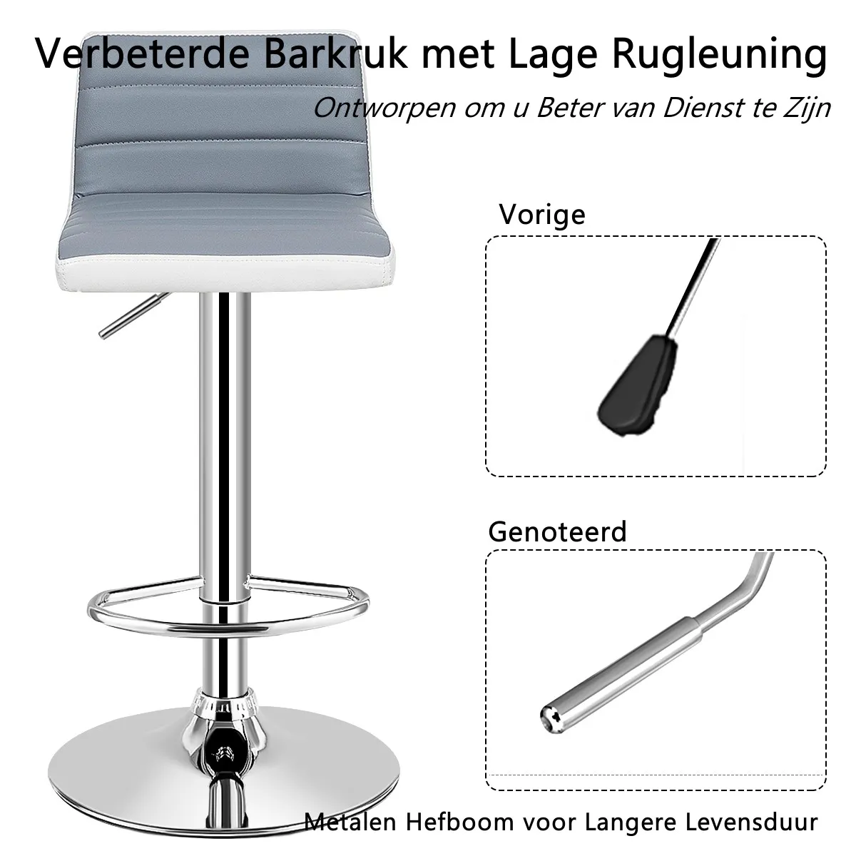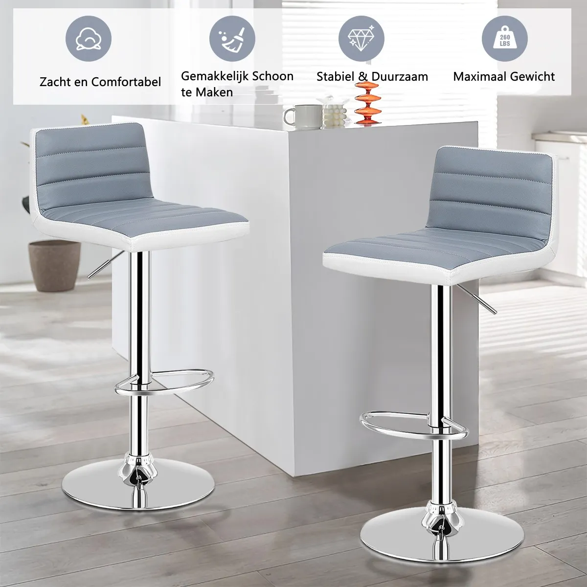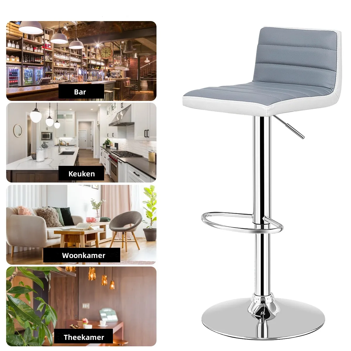 Set van 2 Moderne barkrukken voor veel plaatsen: De witte en grijze look in combinatie met het zilveren onderstel maken dit een stijlvol meubelstuk dat een eigentijds tintje aan uw kamer zal geven. Deze set van 2 moderne krukken biedt een gezellige plek voor sociale bijeenkomsten en lichte maaltijden, perfect voor eetkamer, aanrecht, woonkamer, entertainmentruimte, café, bistro, enz.
